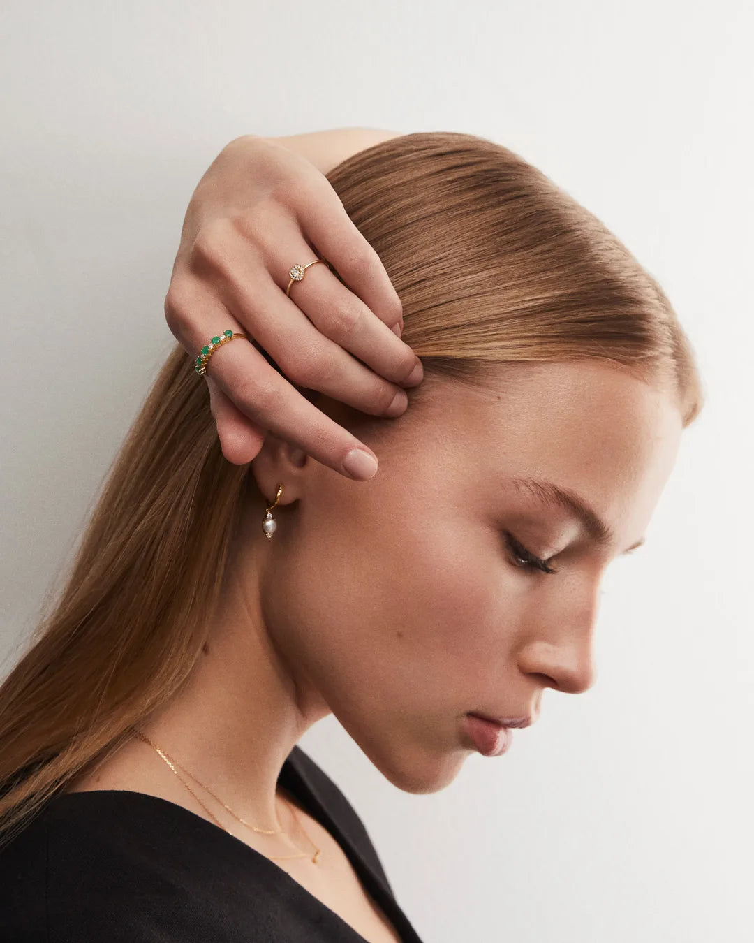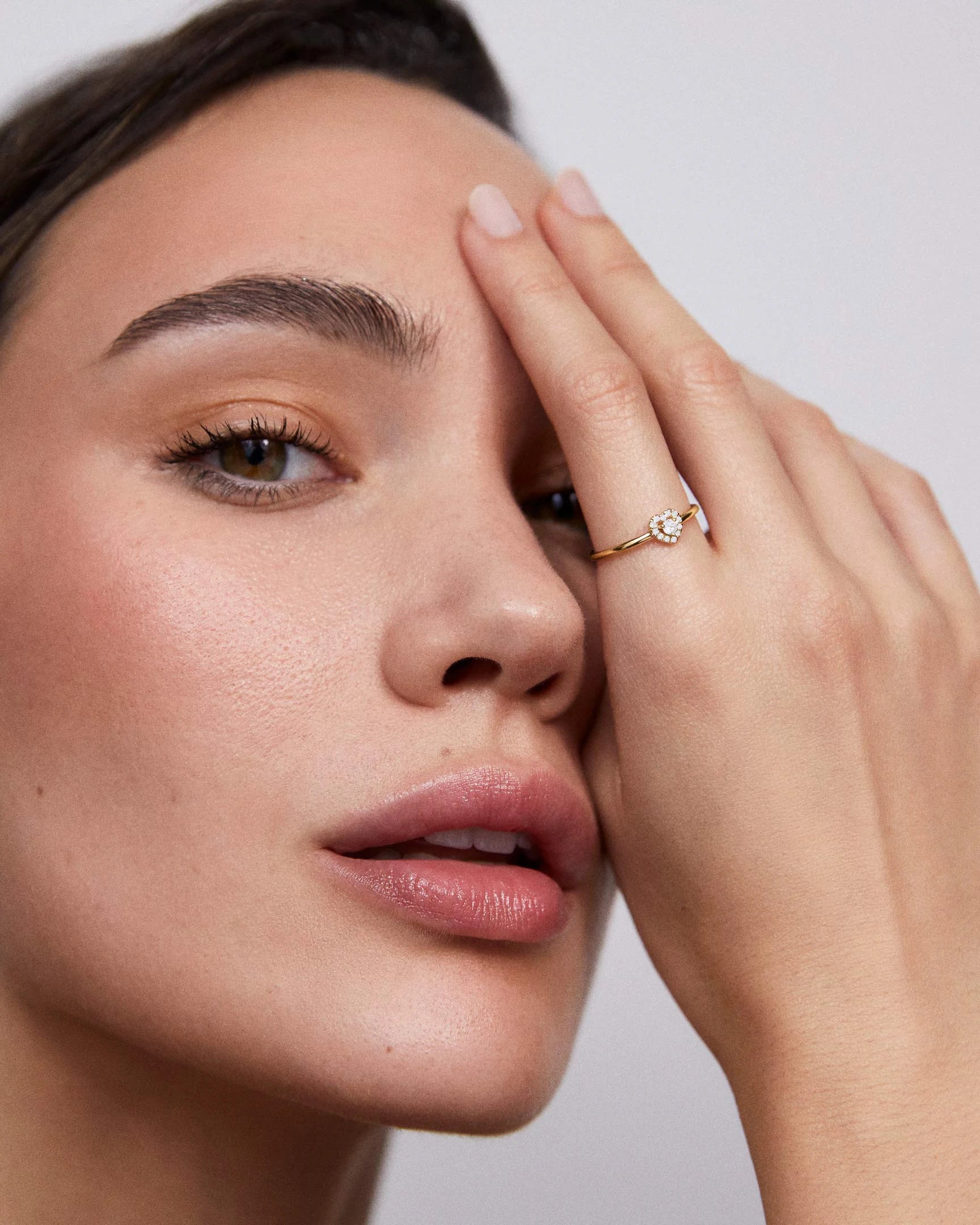 18k gold, diamonds and the glow of a starlit night. Mumit's Ariadne collection pays tribute to the stories we tell to make sense of the wonders of the night sky. Each piece features a central diamond surrounded by a floating halo, reminiscent of a delicate crown of stars. Discover its ethereal elegance and the legend behind it.