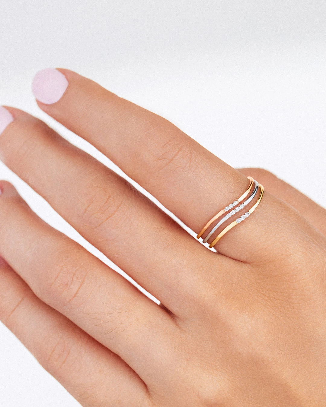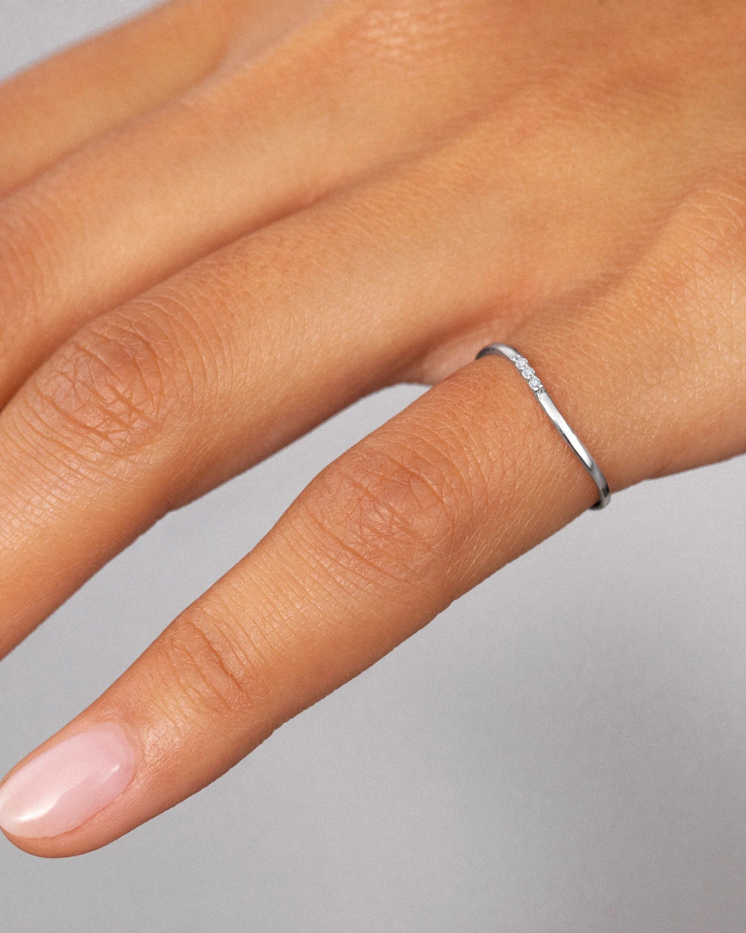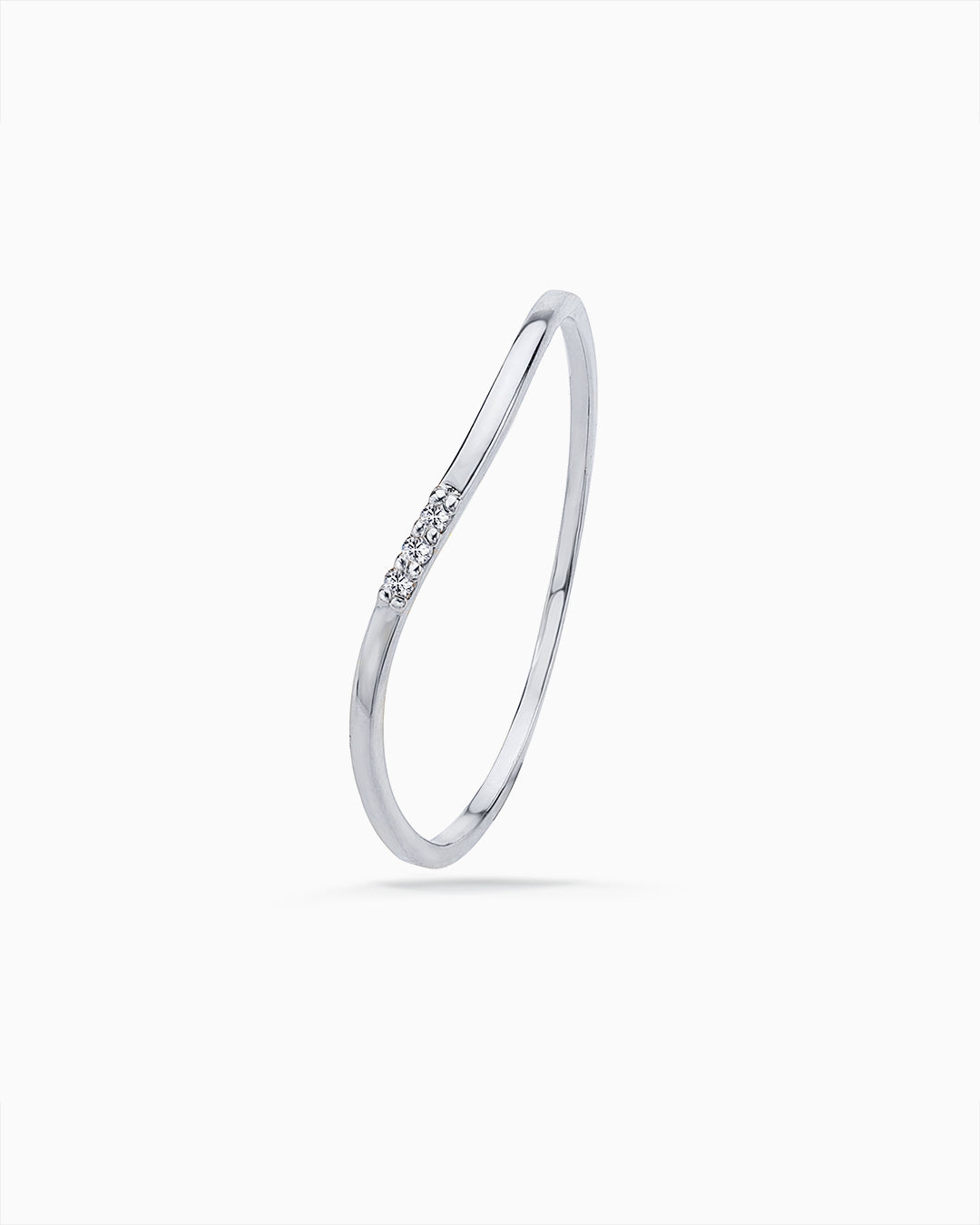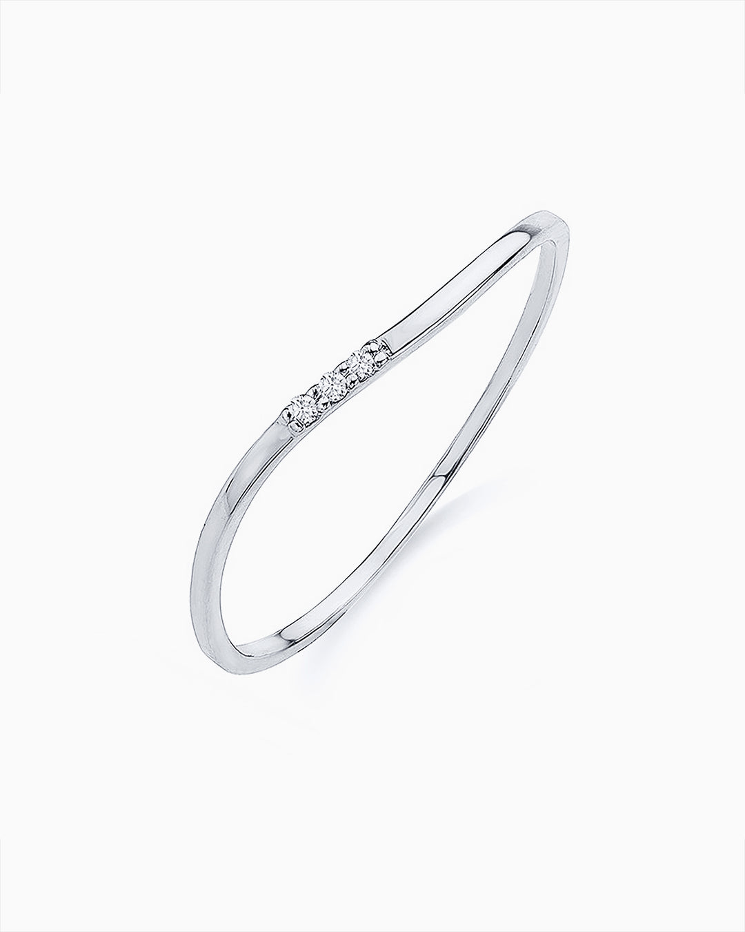 Perfect for everyday wear, the Wave ring in 18k white gold and diamonds is the essential you've been looking for. Perfect to wear alone or as part of the Wave collection in yellow, rose and white gold. This delicate ring with a subtle curved shape becomes a unique piece of jewelry when you unite the three Wave designs. Beauty and harmony come together to create this original ring.