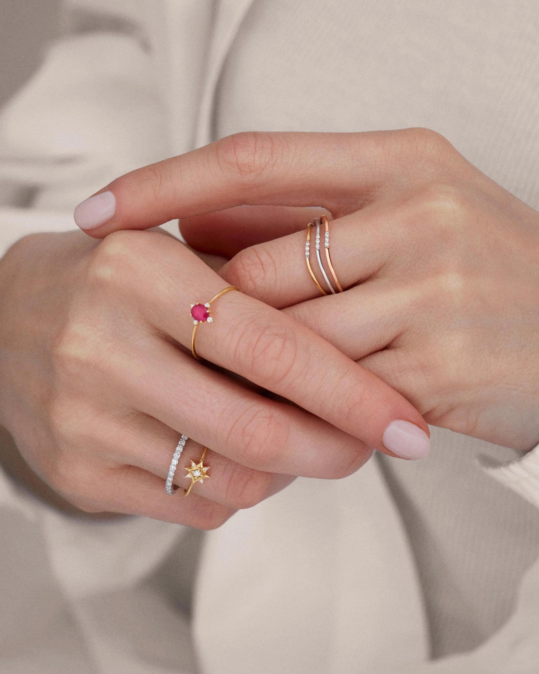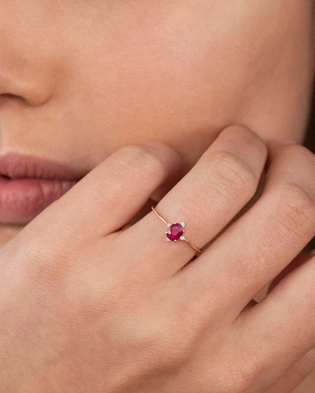 - Gemstone: Oval-cut ruby