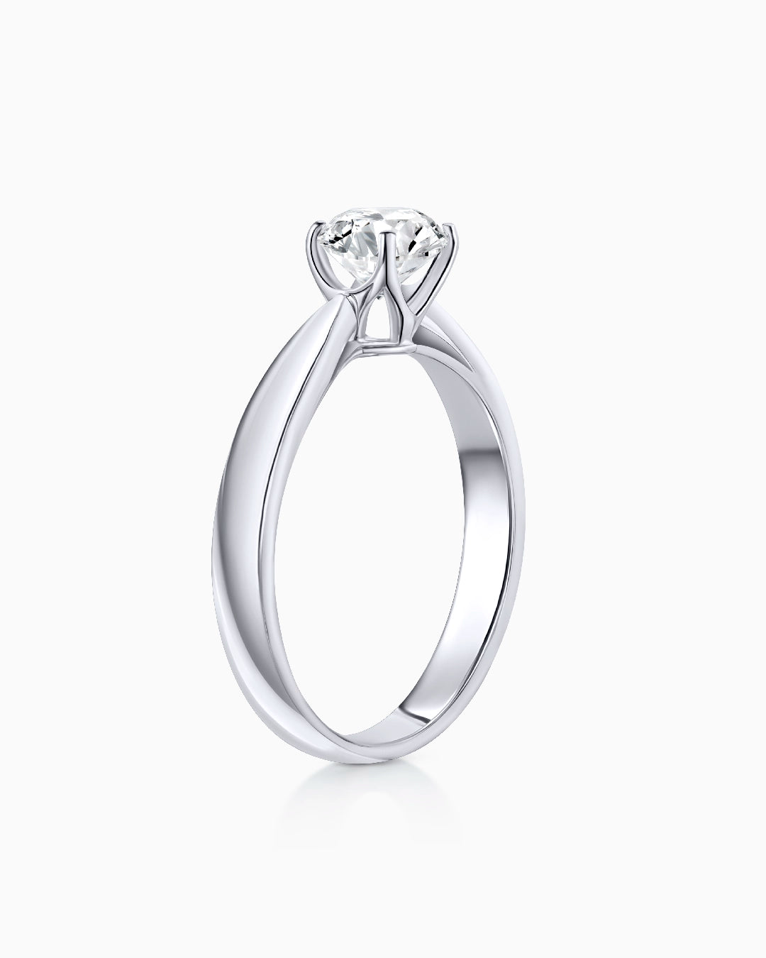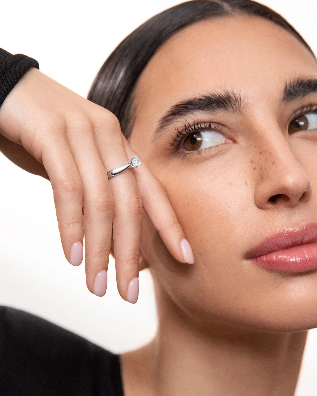 Love is the strongest feeling that exists. At the same time, it is as delicate as the sparkle of a diamond. Discover the most innovative and contemporary way of expressing everlastig love with our Always collection. The solid structure of this ring is finely crafted to showcase the magnificent one carat brilliant-cut diamond. Delicate and innovative, this modern take on the four-claw setting creates the illusion that the diamond is floating on your skin, achieving a stunning display of light. The Always ring is designed so you can effortlessly stack your wedding band beside it and celebrate your personal style. A romantic ring to say “Ever thine, ever mine, ever ours” - Beethoven. The Always solitaire diamond ring is available in seven different carat weights: 0.10, 0.20, 0.30, 0.40, 0.50, 0.70 and one carat.