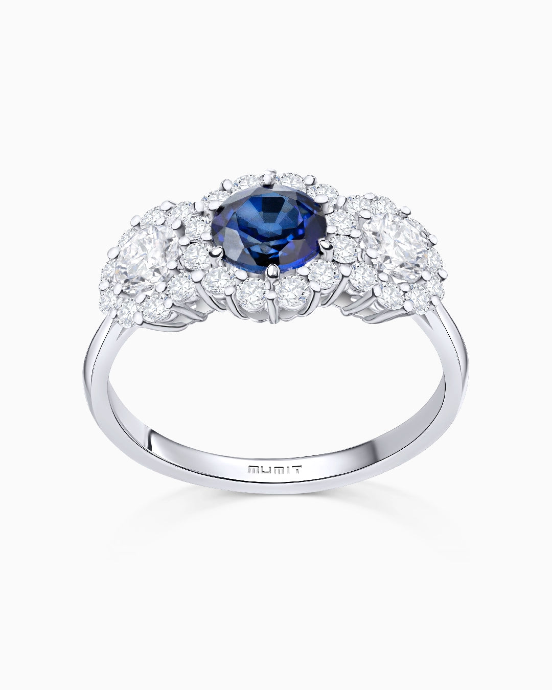 - Gemstone: central brilliant-cut sapphire (carat total weight 1)