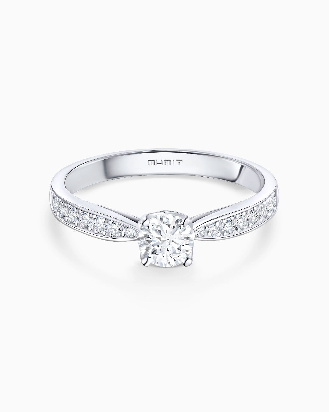 Pavé Always 0.86 ct Solitaire Diamond Ring in 18k White Gold