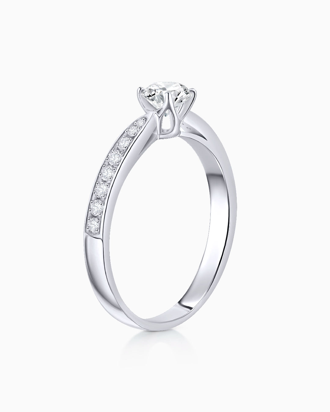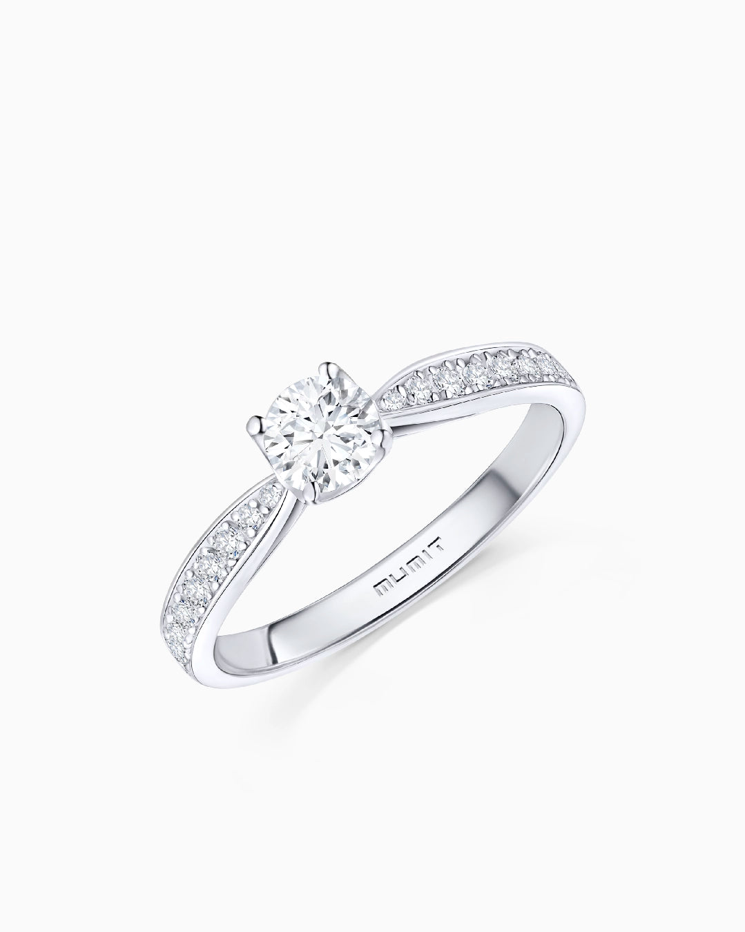 This solitaire ring comes with a GIA certificate. The Gemological Institute of America is one of the most respected grading laboratories in the world, providing unbiased assessments of a diamond's quality and characteristics. You will find a unique code in each certificate, which is also laser inscribed on the surface of the diamond to confirm its identity. Please note that this is a minute inscription, which is only visible under intense magnification. The accompanying report will include a scientific assessment of the stone’s colour, clarity, cut and carat weight. By offering this important information, we want to help our customers understand the key attributes of their diamonds so they can rest assured of the quality of their purchase.