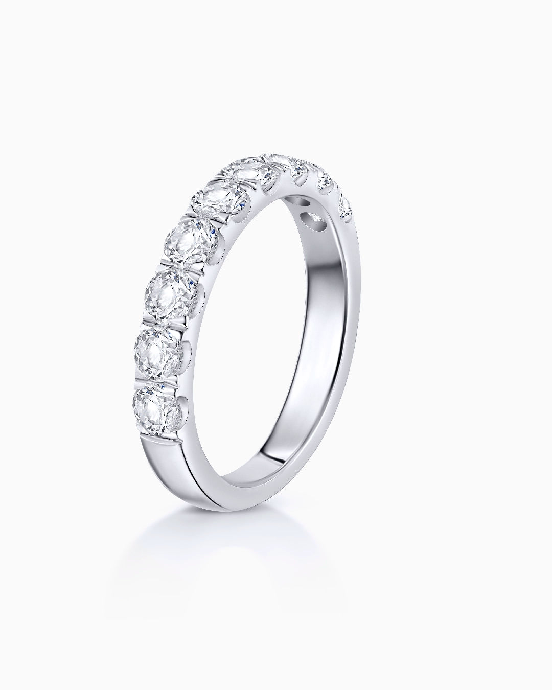 Stella diamond ring crafted from 18k white gold. The unique gleam of the Stella ring represents the pure essence of who we are at the core and the beauty of a sincere promise. This minimalist design stands out for a special setting that lets the maximum amount of light enter the diamonds from every angle, highlighting the unique gleam of each stone. Its magnificent proportions are enhanced by soft and rounded lines, revealing a perfect balance between jeweler know-how and modern sensibilities that redefines classic silhouettes to adapt them to current needs. Comfortable and symbolic, our Stella ring is perfect for everyday wear. The Stella diamond ring is available in four different carat weights: 0.35, 0.50, 0.75 and 1.20.
