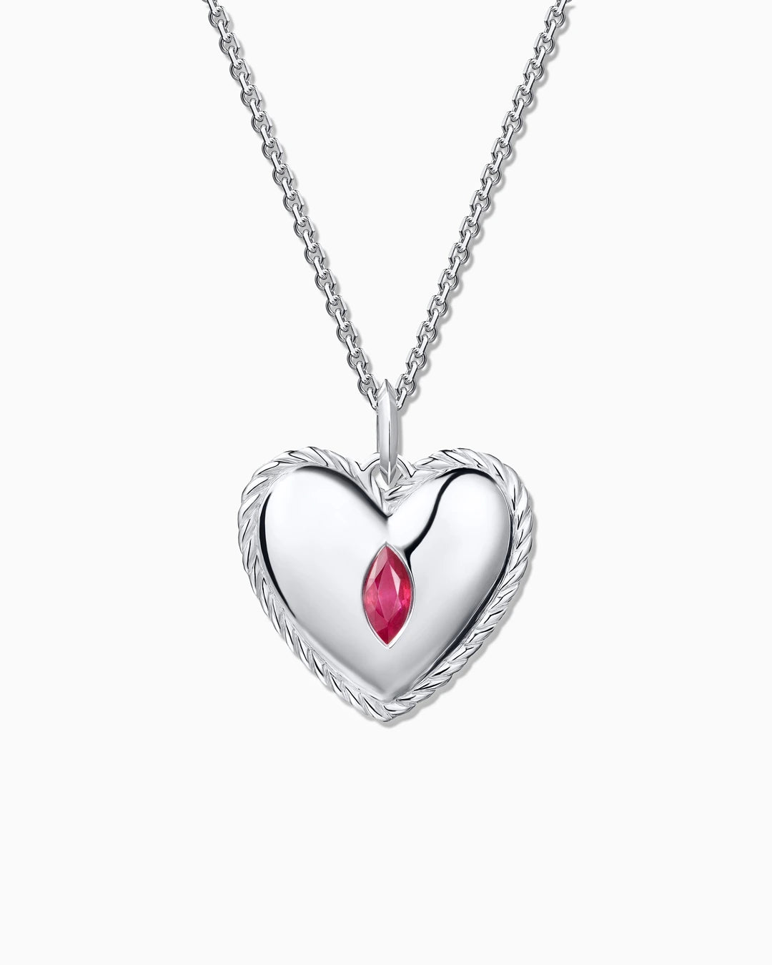 Culpables Heart Ruby Charm Pendant in 18k White Gold