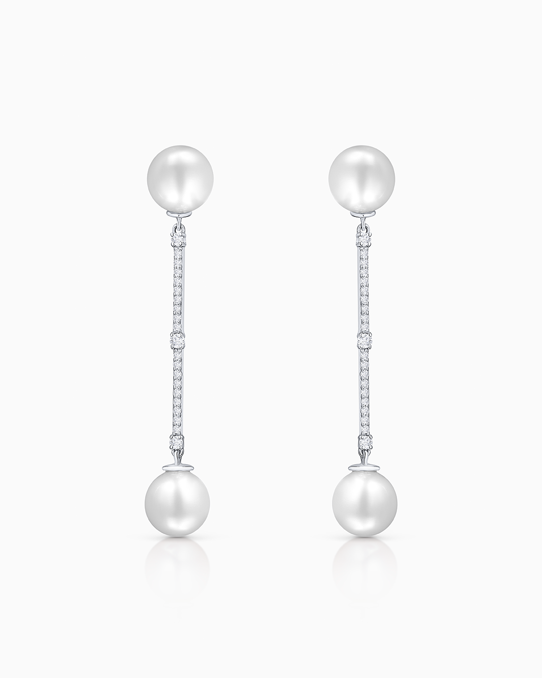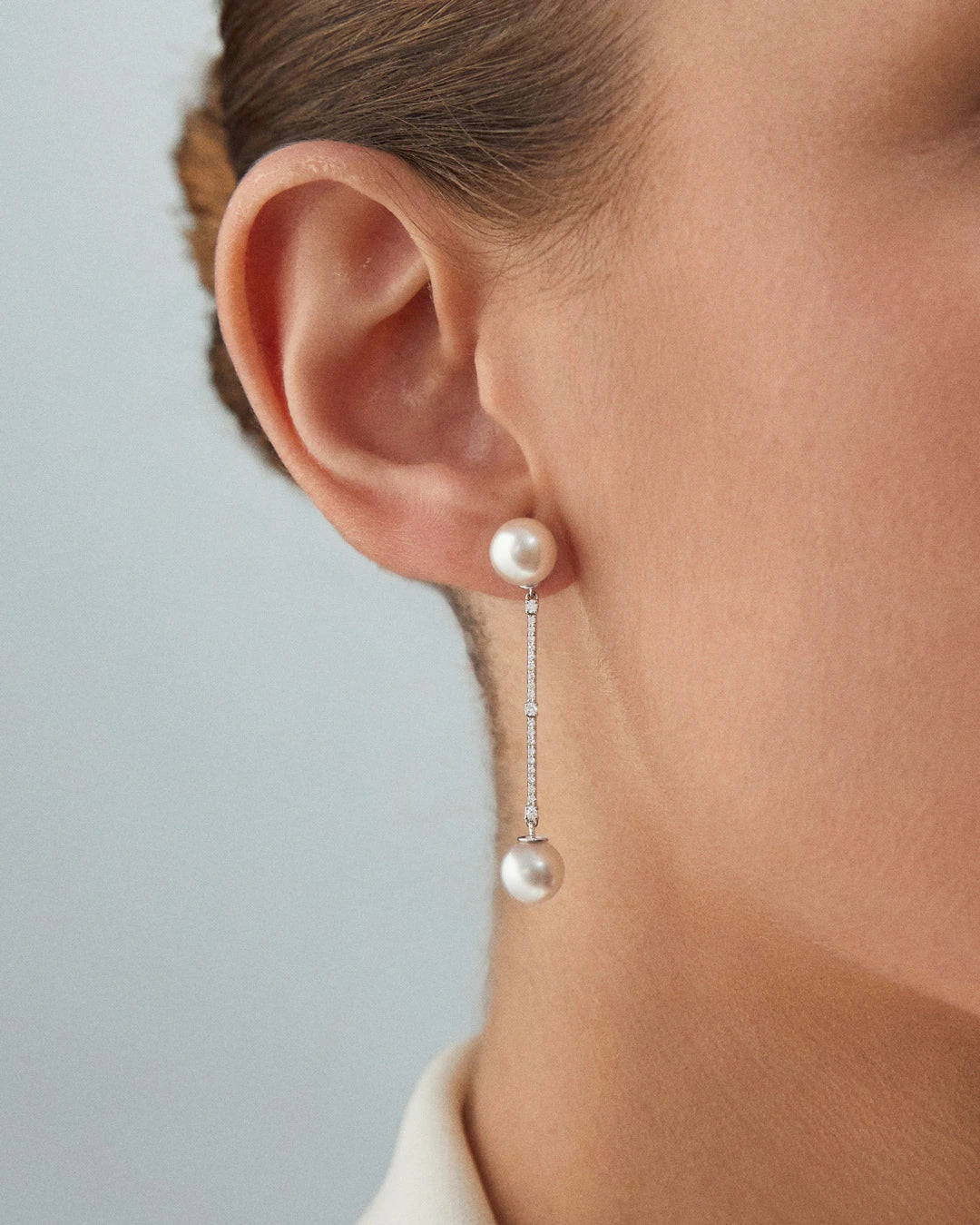 Blending tradition with contemporary style, the Sophie earrings capture enduring ideals of beauty and harmony. To bring a fresh perspective, our designers introduced an almost invisible setting that lets two natural pearls shine in all their splendour. They seem to float on an invisible thread, their soft glow and gentle curves enhancing the piece’s delicacy and symmetry. Connecting them, a fine strand of brilliant-cut diamonds adds subtle sparkle while keeping the design light and balanced, resulting in a jewel of perfect proportions. Sophie is a refined creation that brings timeless elegance into the present.