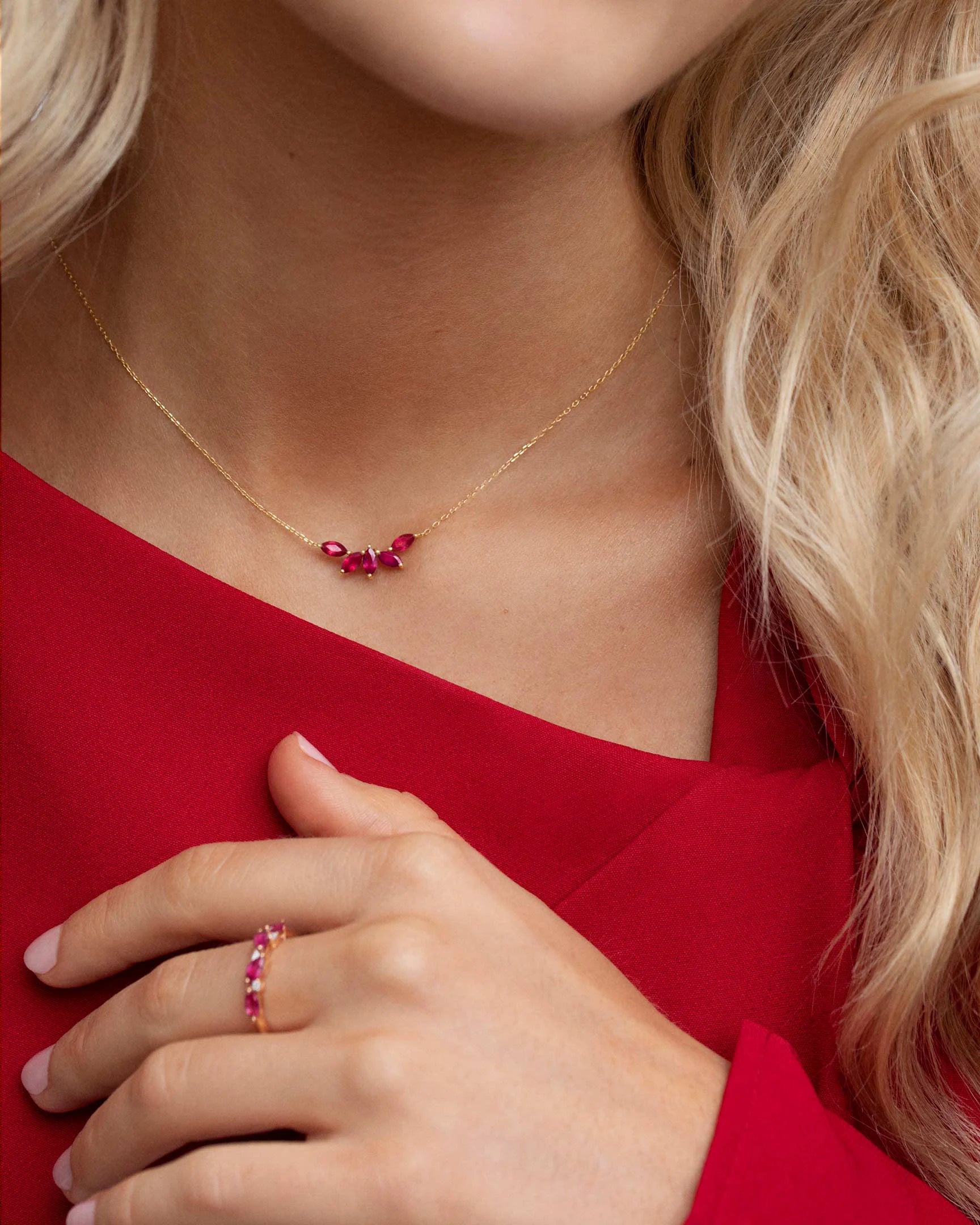 Gargantilla Tri-Marquise Rubí en Oro Amarillo de 18 Kt