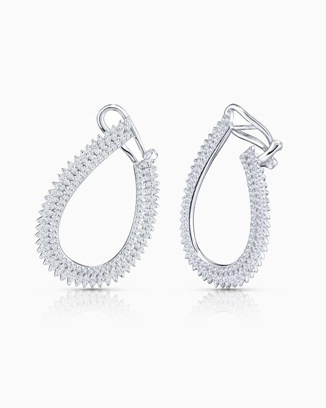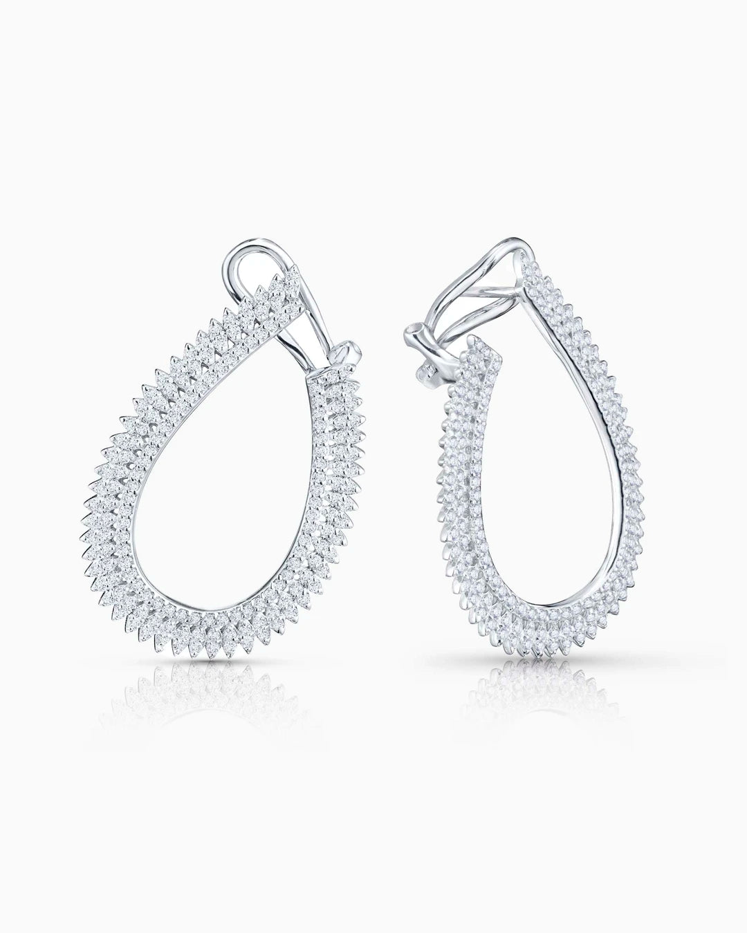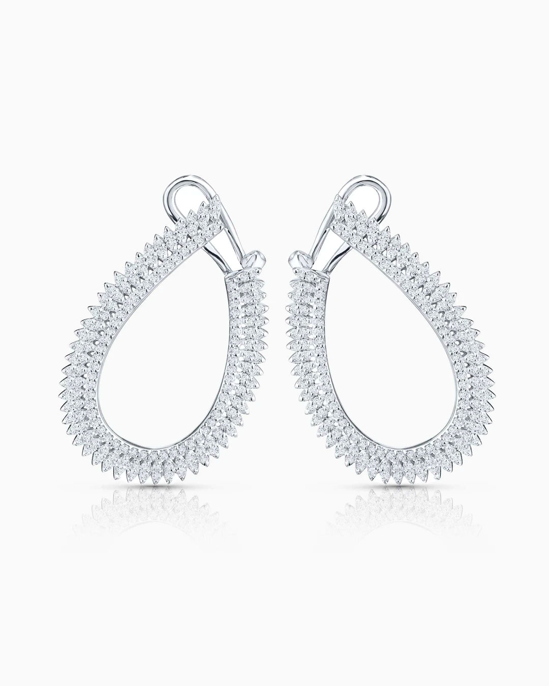 Pendientes Infinty de diamantes engastados en oro blanco de 18 Kt.Inspirados en la infinidad, el diseño de los pendientes Infinity representa el máximo grado de perfección joyera en cada uno de sus ángulos. Estos elaborados pendientes de aro trazan una original forma a través de los engastes de los diamantes, simbolizando el movimiento de las plumas de un ave. Una pieza de alta joyería llena de minuciosos detalles en los que los diamantes de talla brillante cobran vida a través de sus formas. Un fascinante y exclusivo diseño de líneas depuradas que realza la belleza de cada uno de sus diamantes, posee un quilataje total de un quilate y medio.