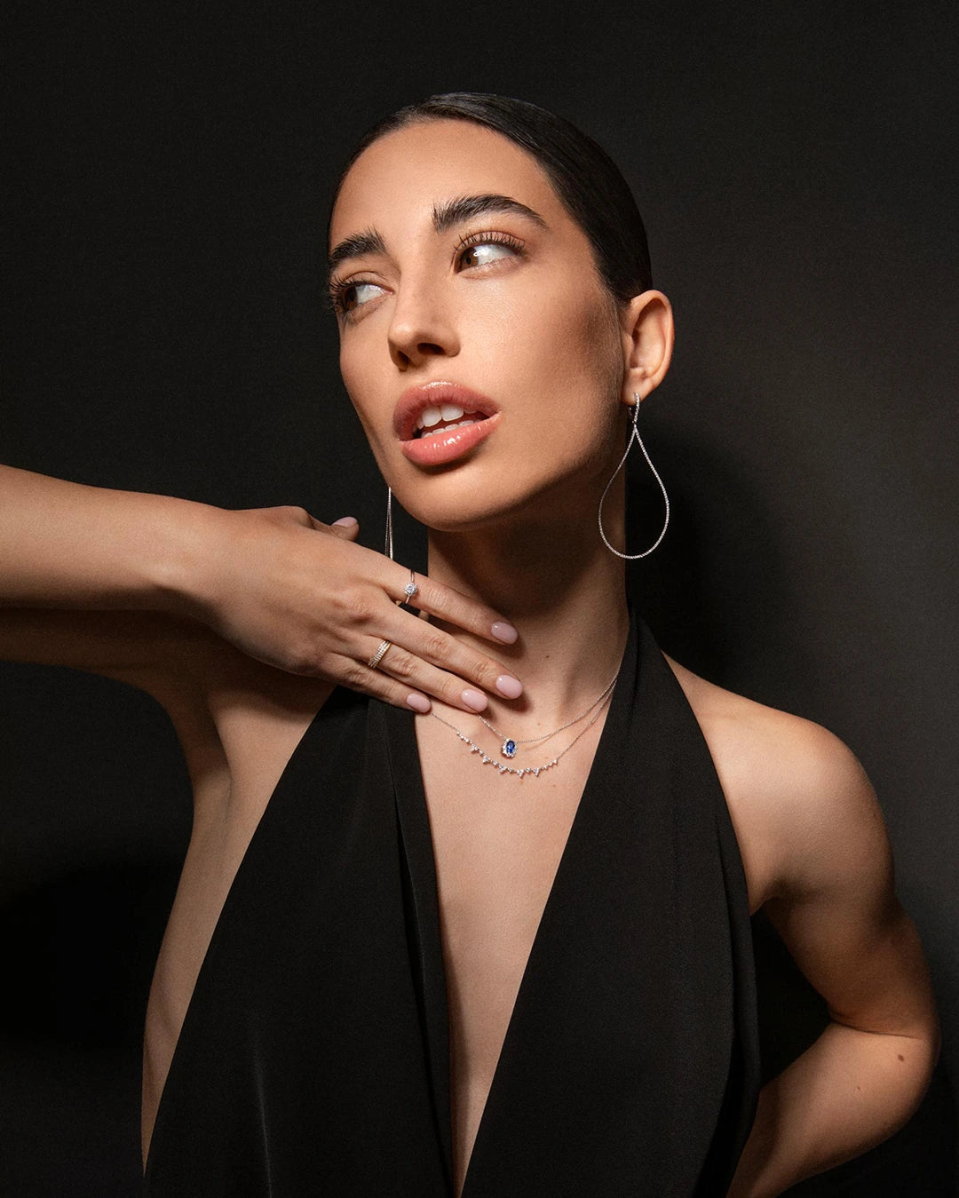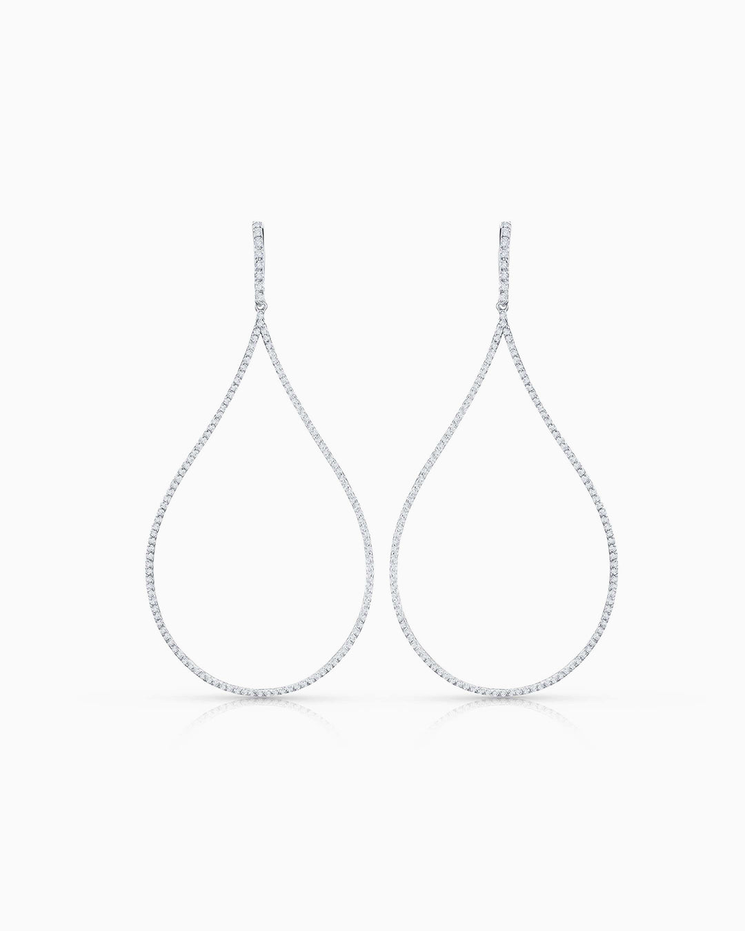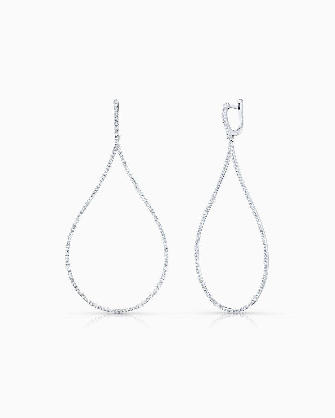 Pendientes ONA de diamantes engastados en oro blanco de 18 Kt. Inspirados en los destellos del rocío de la mañana, los pendientes ONA representan el máximo grado de perfección joyera en cada uno de sus engastes. Una pieza de alta joyería que simboliza la perfección de las gotas de lluvia y su brillo al entrar en contacto con la piel. Los diamantes de talla brillante recorren esta delicada forma culminando en un aro que se agraza con gracia al lóbulo. Un fascinante y exclusivo diseño de líneas depuradas que realza la belleza de cada uno de sus diamantes, posee un quilataje total de un quilate y medio.