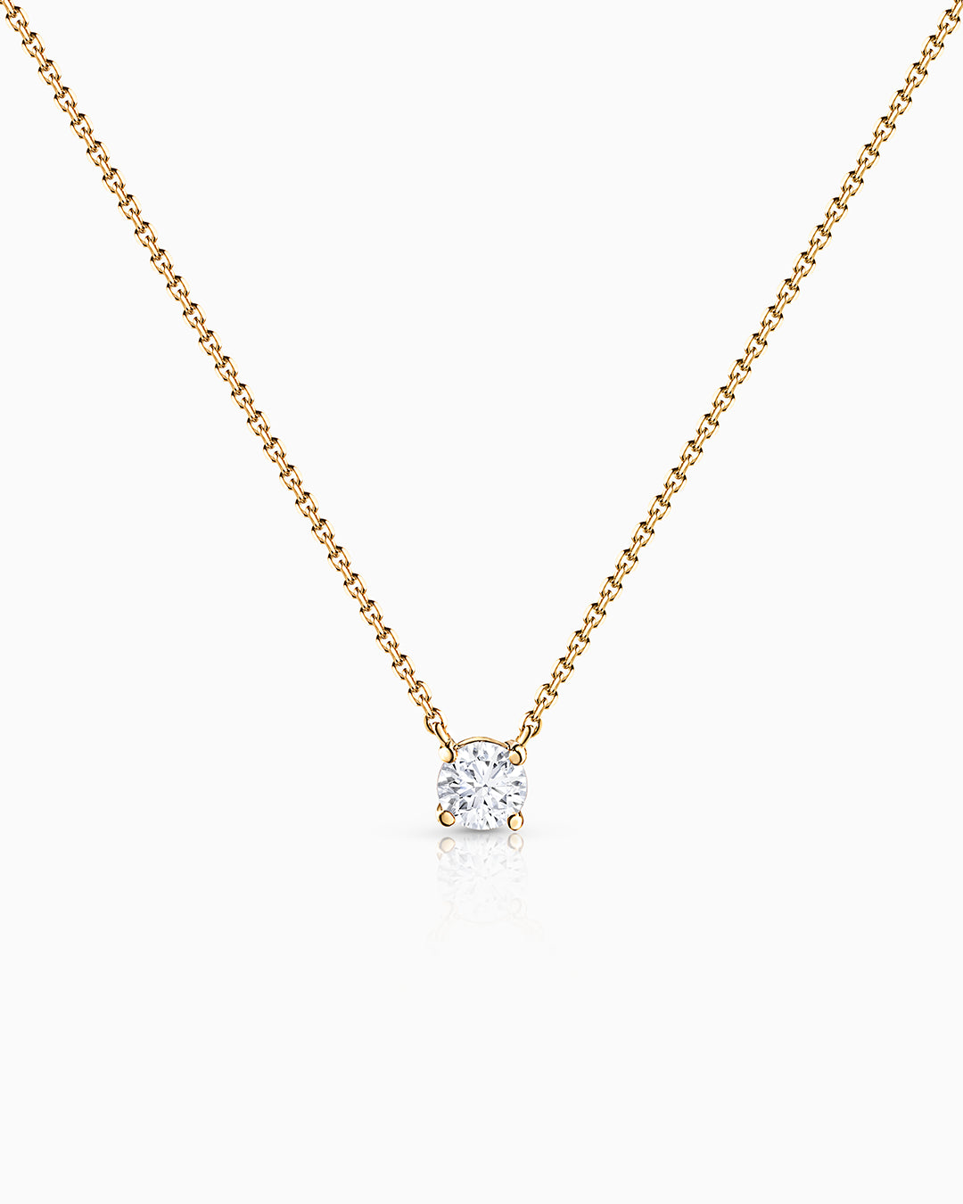 Esta gargantilla incluye un certificado gemológico GIA. El Instituto Gemológico de América es uno de los laboratorios más prestigiosos del mundo dedicado a la investigación y divulgación de las características de los diamantes. Cada certificado presenta un código único, que también aparece grabado con láser en el filetín del diamante de forma discreta e imperceptible a simple vista para confirmar su identidad. El informe que lo acompaña incluye una evaluación técnica del color, pureza, talla y peso de la piedra. Gracias a esta información, esperamos poder facilitar que nuestros clientes conozcan las características clave de sus diamantes y garantizarles que hayan comprado un producto de calidad.