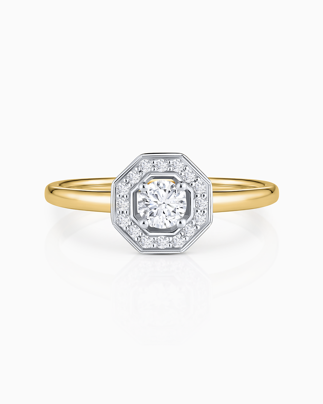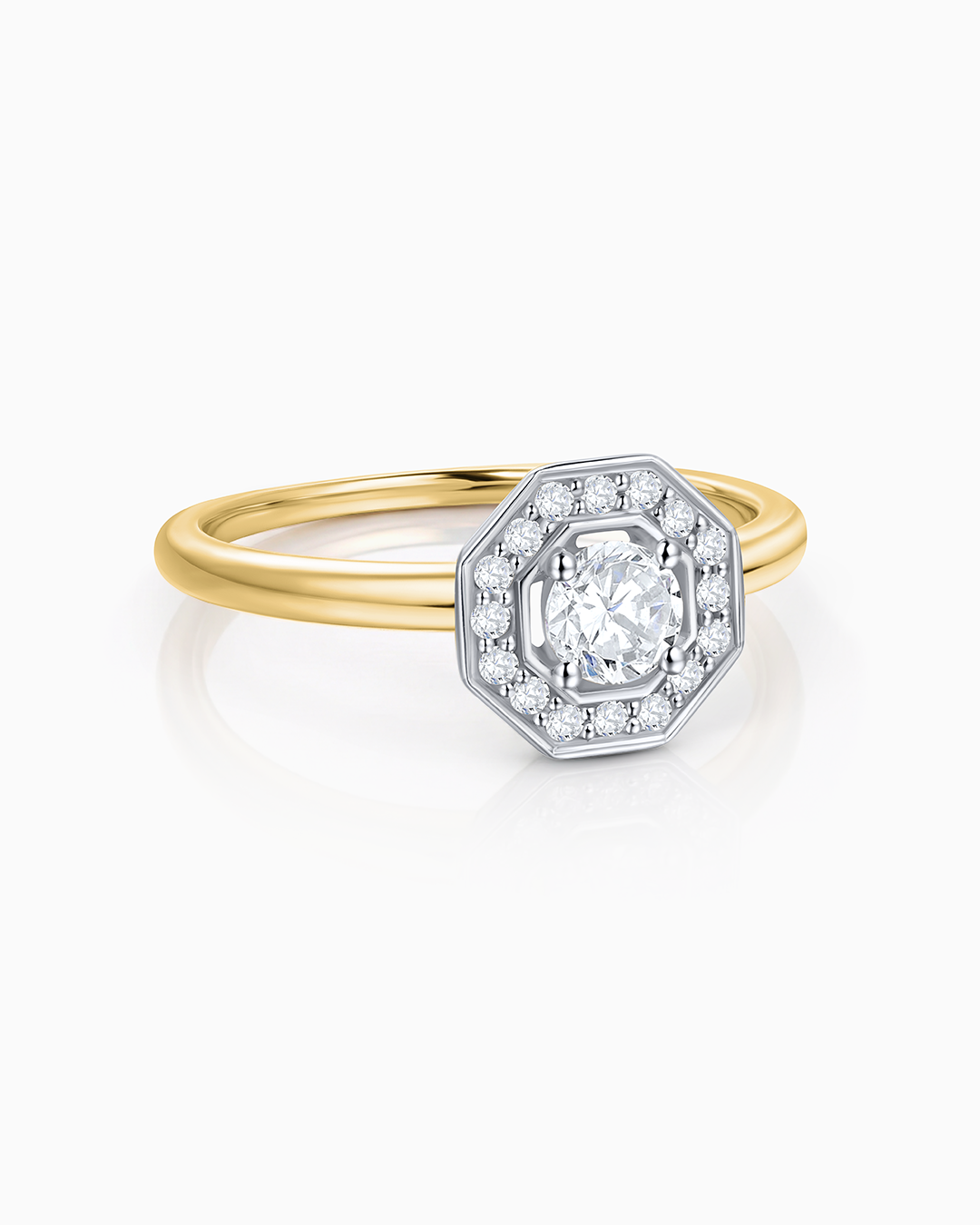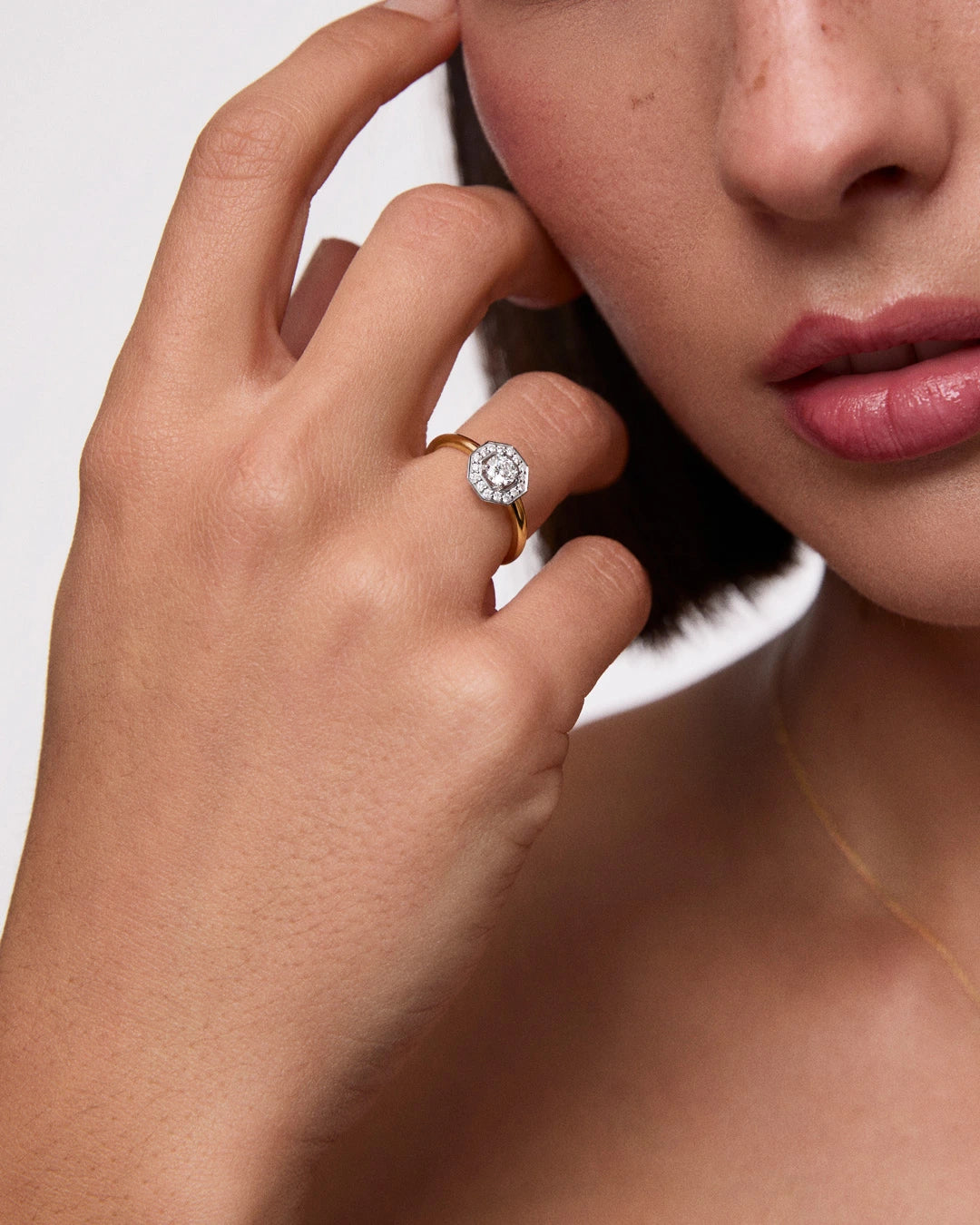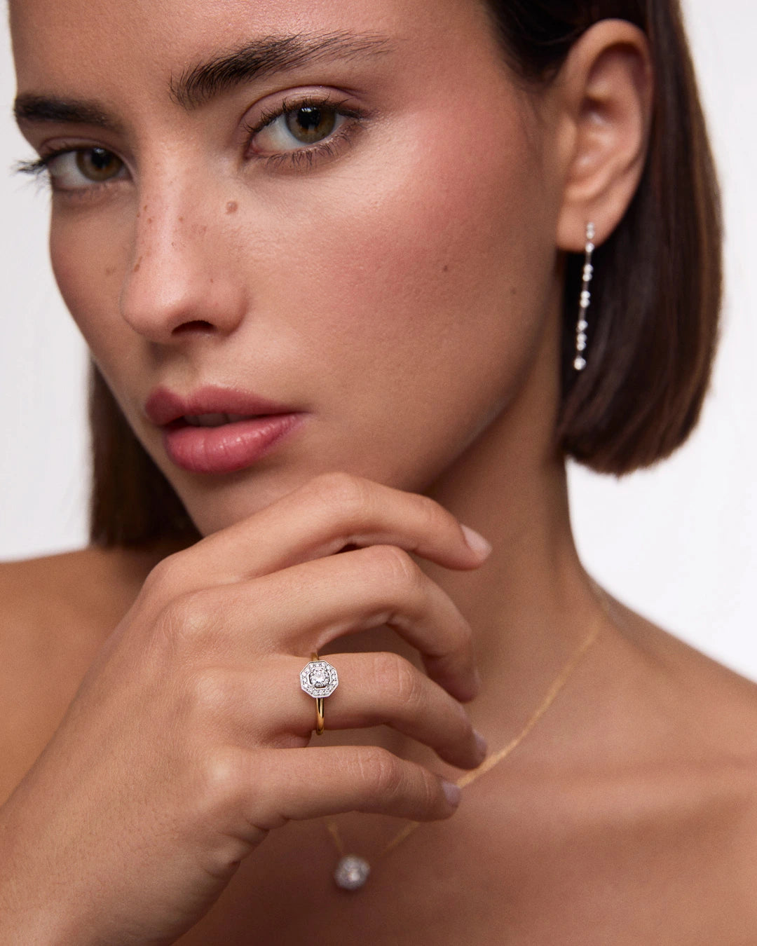 En Mumit, queremos celebrar el centenario del art déco con una colección de joyas inspirada en el espíritu vanguardista de los años 20 y diseñada para la mujer de hoy. La sortija Art Deco Belle apuesta por la armonía y la elegancia atemporal de las formas geométricas. Su nombre rinde homenaje a Belle Kogan, una de las mujeres que definieron los códigos del movimiento desde el ámbito del diseño industrial. Esta joya presenta un exquisito diamante central de 0,30 quilates, certificado por la GIA y enmarcado en una orla octogonal que ensalza la simetría del conjunto. Elaborada en oro blanco y amarillo de 18 kt, la montura incorpora un brillo singular, evocando la preferencia por los contrastes del art déco. Una pieza sofisticada y actual que conecta el legado artístico de principios de siglo XX con el presente.