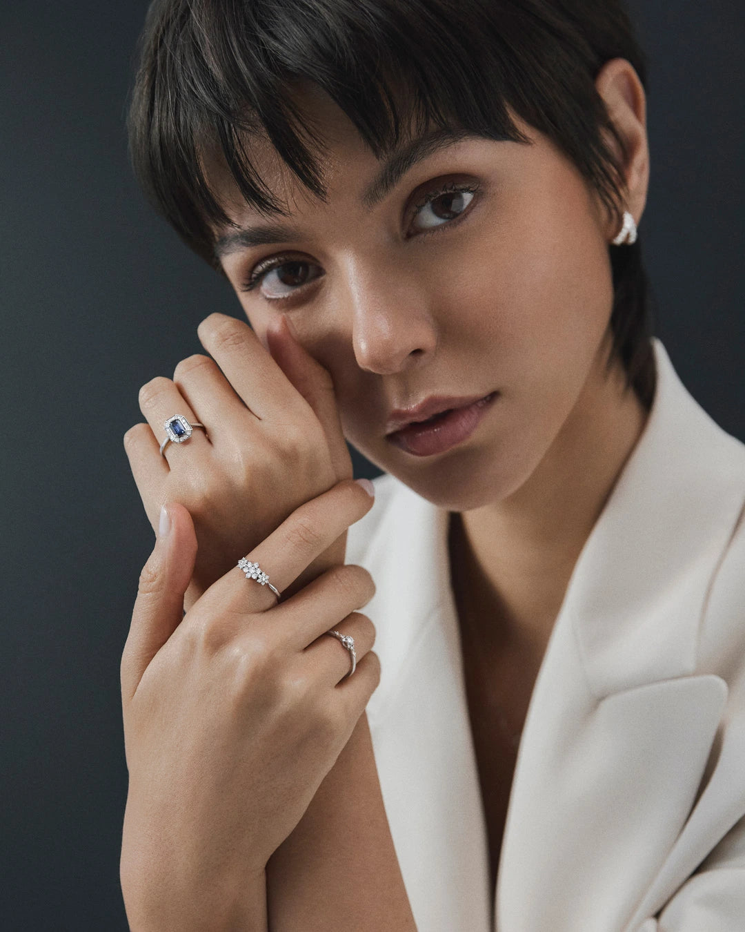 En Mumit, queremos celebrar el centenario del art déco con una colección de joyas inspirada en el espíritu vanguardista de los años 20 y diseñada para la mujer de hoy. La sortija Art Deco Helen destaca por una silueta octogonal de marcado carácter geométrico y un exquisito zafiro en talla esmeralda. Esta creación debe su nombre a Helen Dryden, una reconocida artista que revolucionó el mundo de la ilustración con su estilo sofisticado e innovador, consolidando los códigos visuales del art déco presentes en cada trazo del diseño. Elaborada en oro blanco de 18 kt, la pieza evoca la preferencia por los materiales nobles y los contrastes cromáticos del movimiento. Como toque final, la orla de diamantes naturales enmarca la gema central con un juego de luces sutil y expresivo, fiel a la esencia glamurosa de la década. El resultado es una composición única donde la geometría, el color y la luz se unen para reinterpretar un legado que nunca pasa de moda.