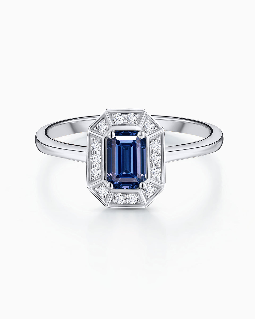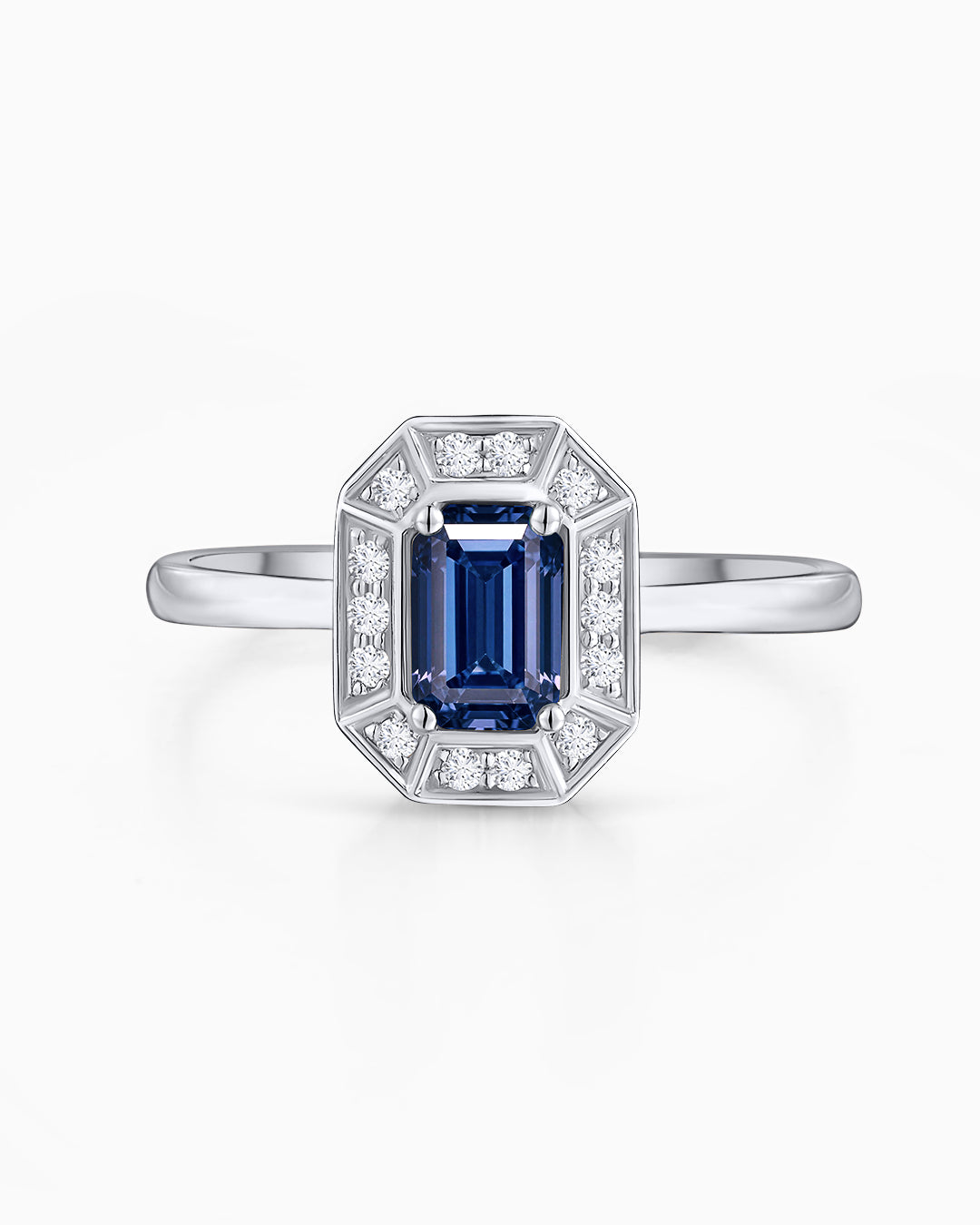 Sortija Art Deco Helen de Zafiro y Diamantes en Oro Blanco de 18 Kt