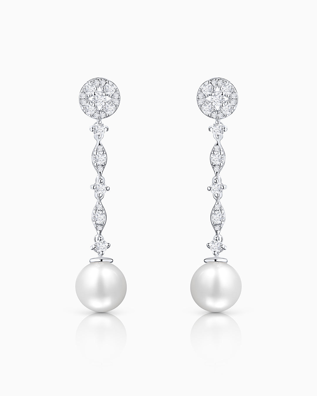 Brincos Caroline de pérola e diamante em ouro branco 18K