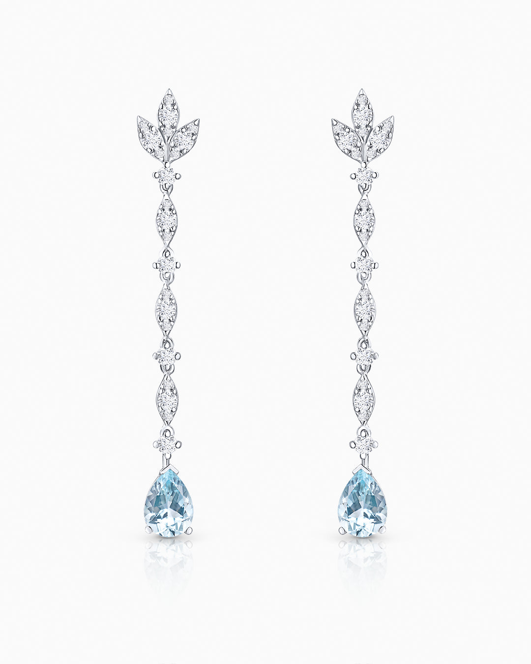 La colección Marella se distingue por un diseño orgánico y evocador que fusiona diferentes elementos de la naturaleza. Por un lado, encontramos delicadas hojas de diamante en talla brillante que afloran como brotes de luz a lo largo del pendiente. Con un total de 0,89 quilates, aportan un resplandor único al rostro, iluminando cada gesto. Por otro lado, dos exquisitas aguamarinas en talla pera culminan el diseño, suspendidas como gotas que danzan al compás de las olas. Este magnífico toque azul refuerza su relación con el elemento agua, mientras que el conjunto de hojas nos traslada a un bosque mediterráneo, donde la brisa marina y la luz del sol se insinúan entre los árboles. Una creación sublime que celebra el encuentro entre naturaleza y elegancia atemporal.