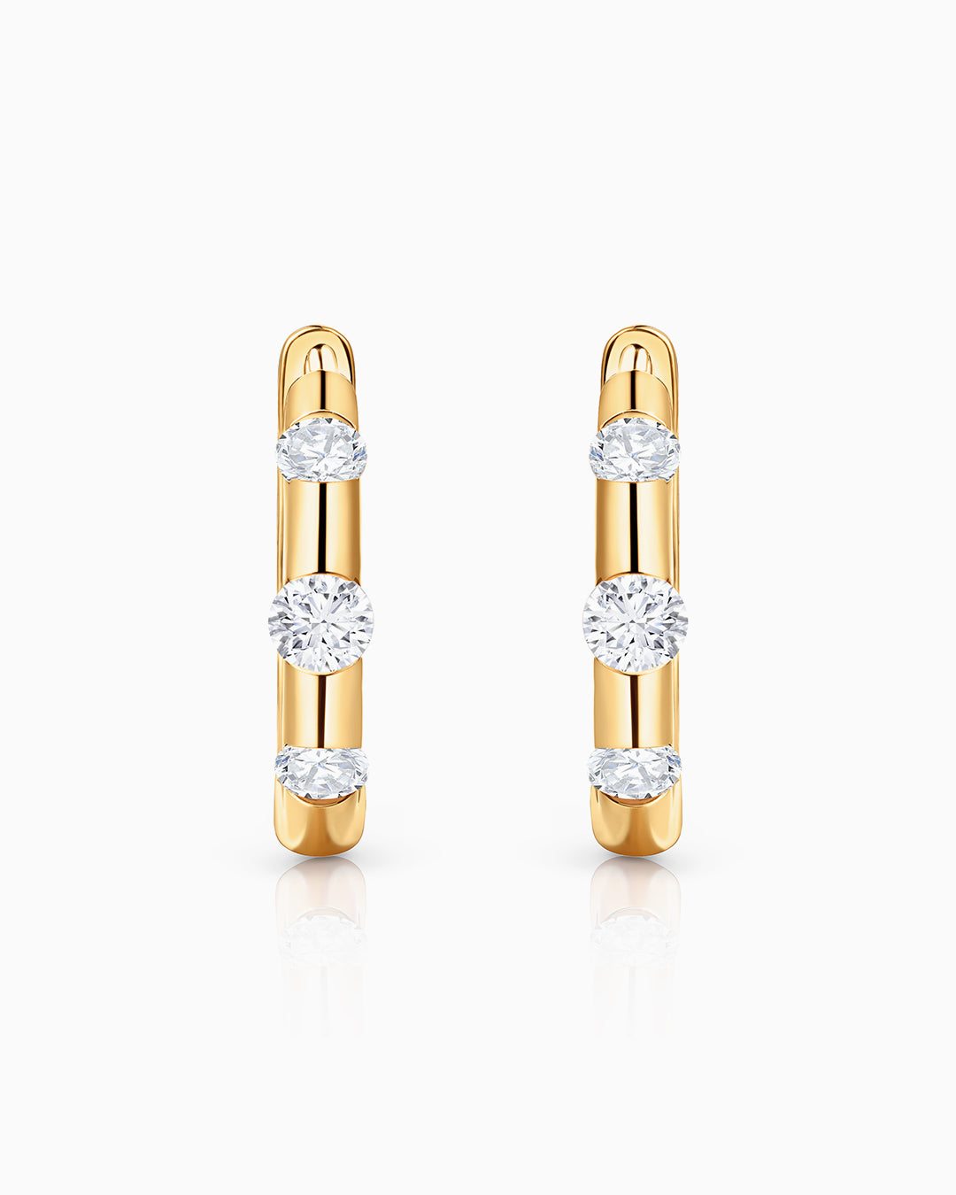 Brincos de diamante também são indispensáveis para o dia a dia, sejam em ouro amarelo, ouro branco ou ouro rosa. Na Mumit, trabalhamos apenas com diamantes naturais, selecionados manualmente por nossos gemologistas especialistas para garantir um brilho excepcional e duradouro.
