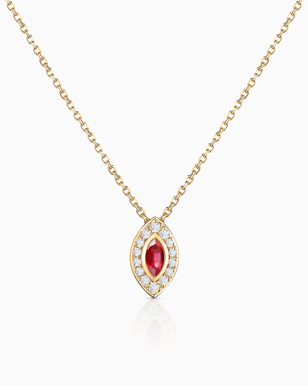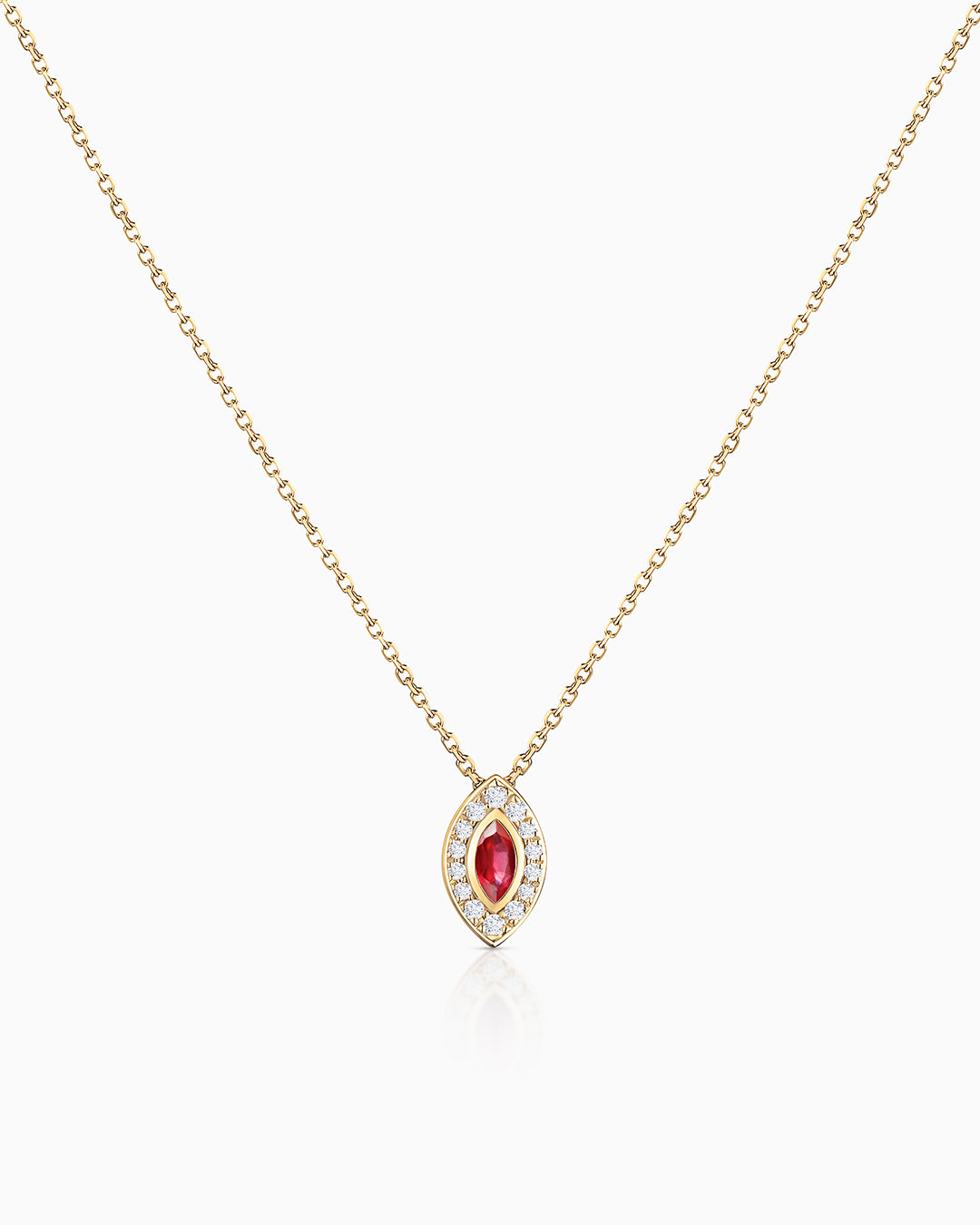 En Mumit, queremos celebrar el centenario del art déco con una colección de joyas inspirada en el espíritu vanguardista de los años 20 y concebida para la mujer de hoy. Nuestros diseñadores han buscado rendir homenaje al revival egipcio, una de las corrientes estéticas más características de la época, con la gargantilla Art Deco Cleo. De líneas estilizadas y alusiones jeroglíficas, ofrece una lectura contemporánea del legado pictórico más extraordinario de la antigüedad. Así, la talla marquise del rubí de Birmania que la protagoniza evoca la misteriosa forma del ojo de Horus, símbolo de orden y perfección. A su vez, este tipo de rubí destaca por la profundidad de su color, valorado como uno de los más exclusivos del mundo. La delicada orla de diamantes naturales que lo rodea refuerza el carácter geométrico del diseño, acentuando el contraste entre forma y color. Una joya sofisticada y original, perfecta para formar parte de colecciones que trascienden el tiempo.