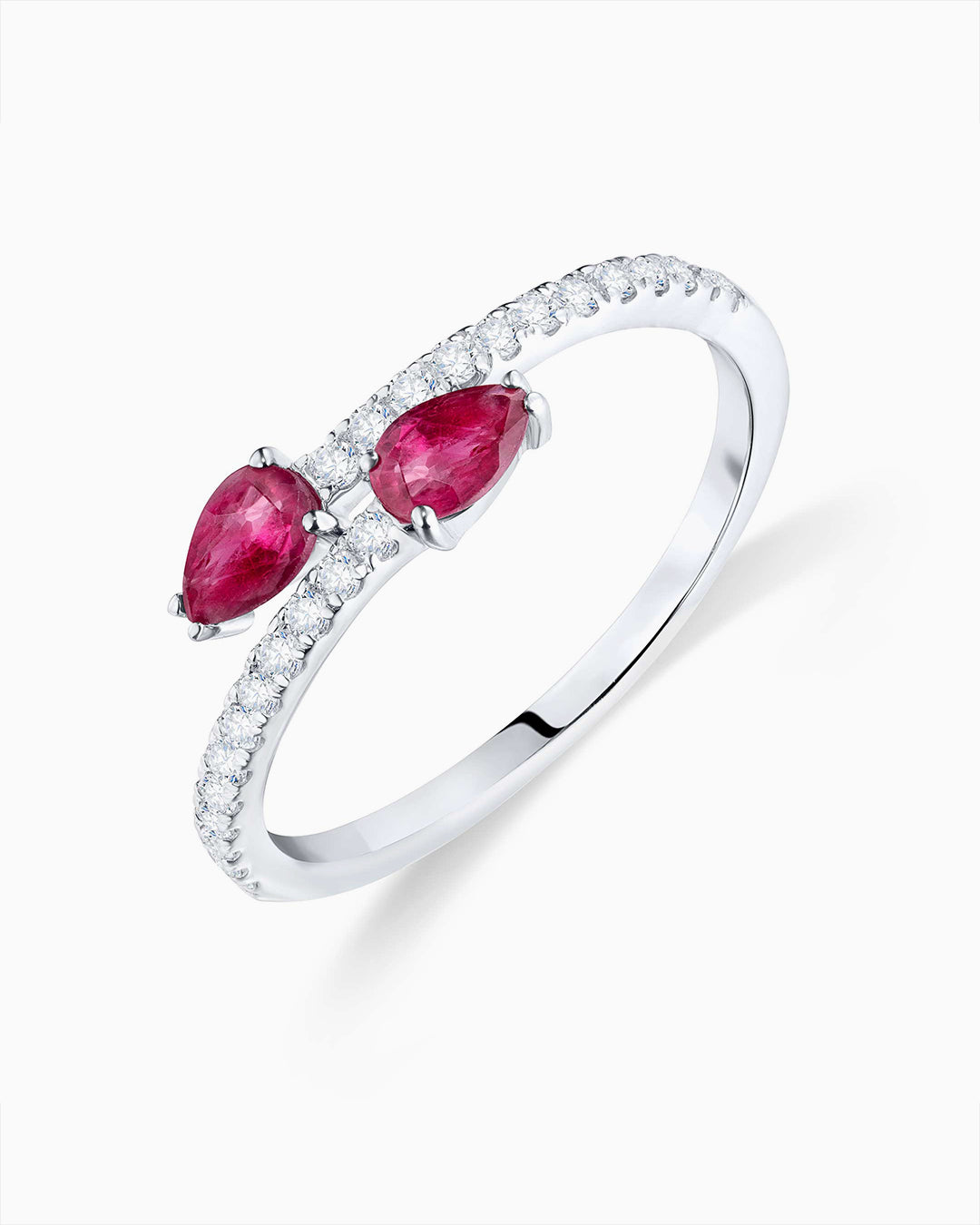Anel Anabel de Diamante e Rubi em Ouro Branco 18 K
