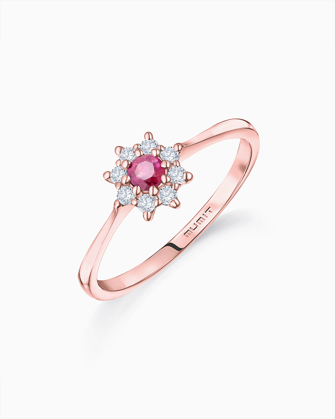 Anel Astrid Rubi e Diamante em Ouro Rosa 18 K
