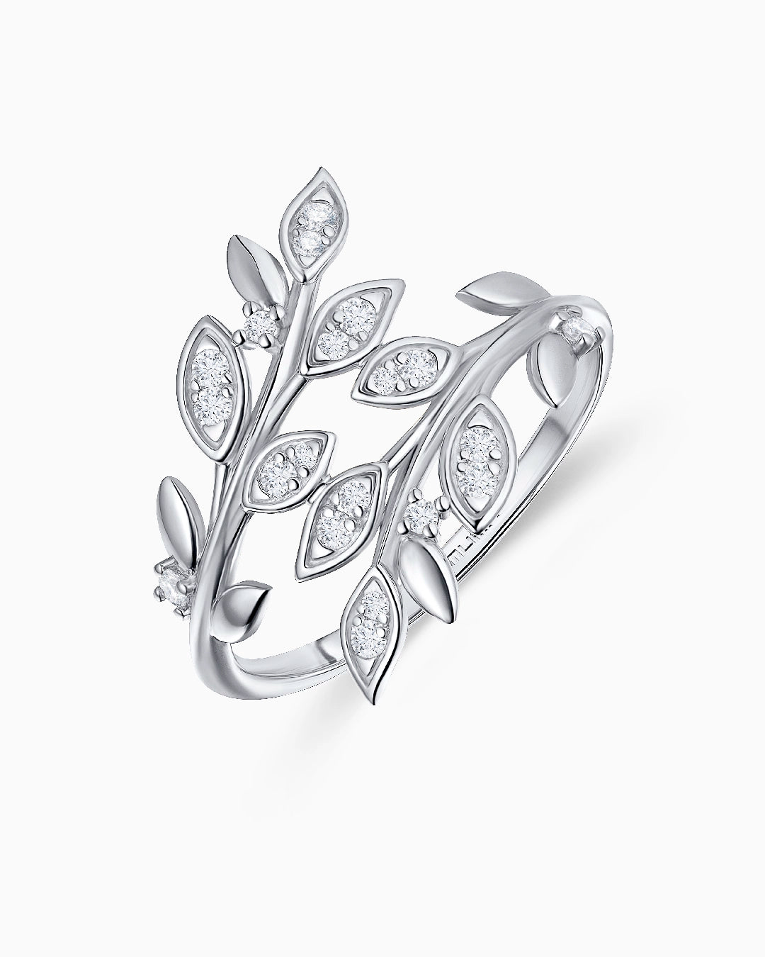 Anel de diamante aberto Dafne em ouro branco 18 K