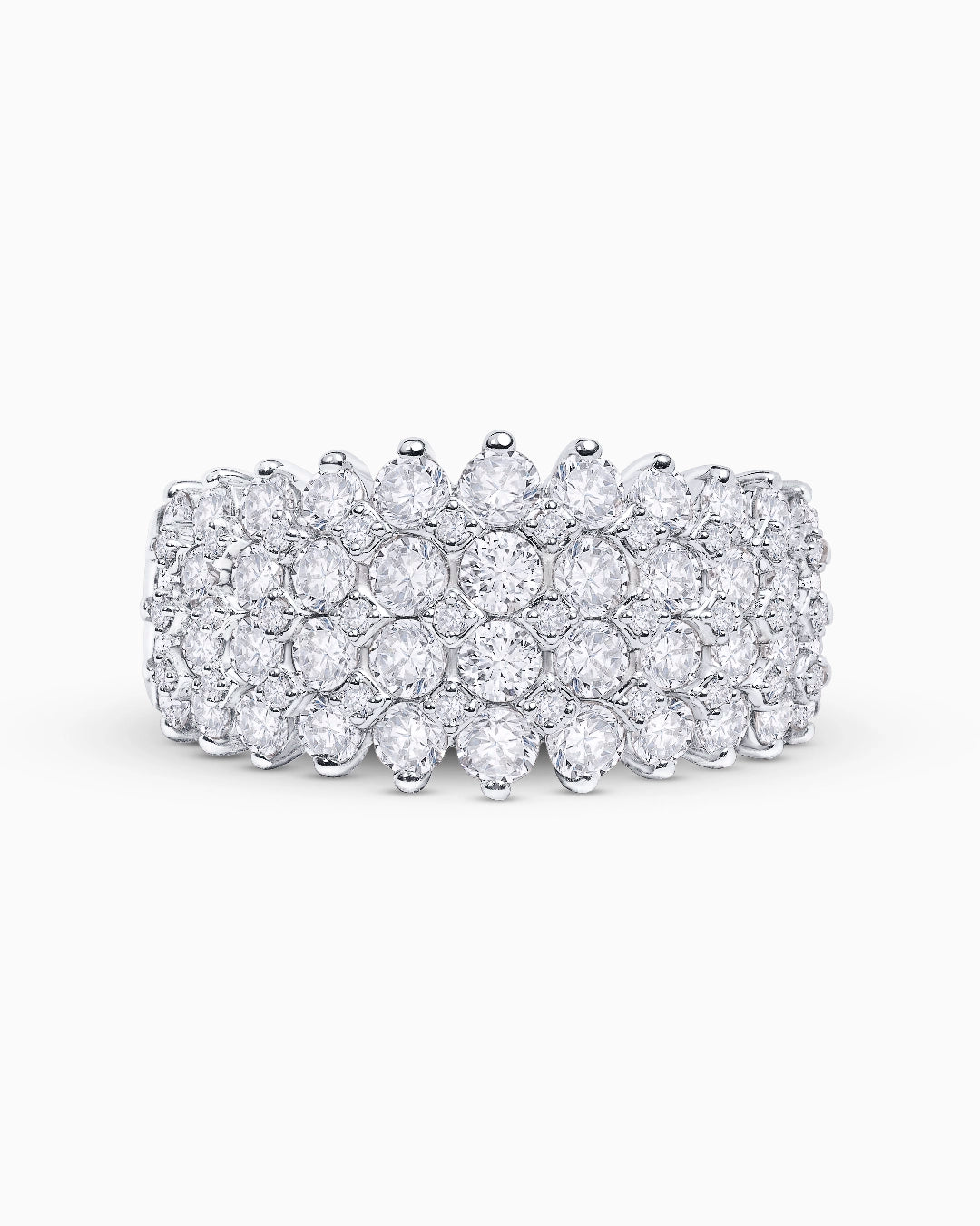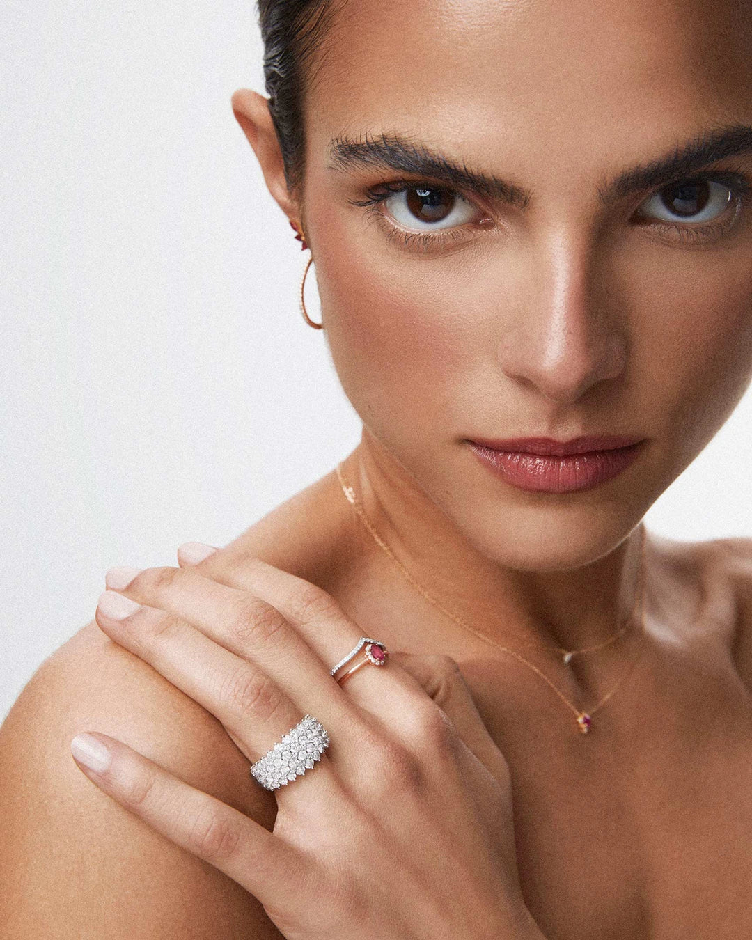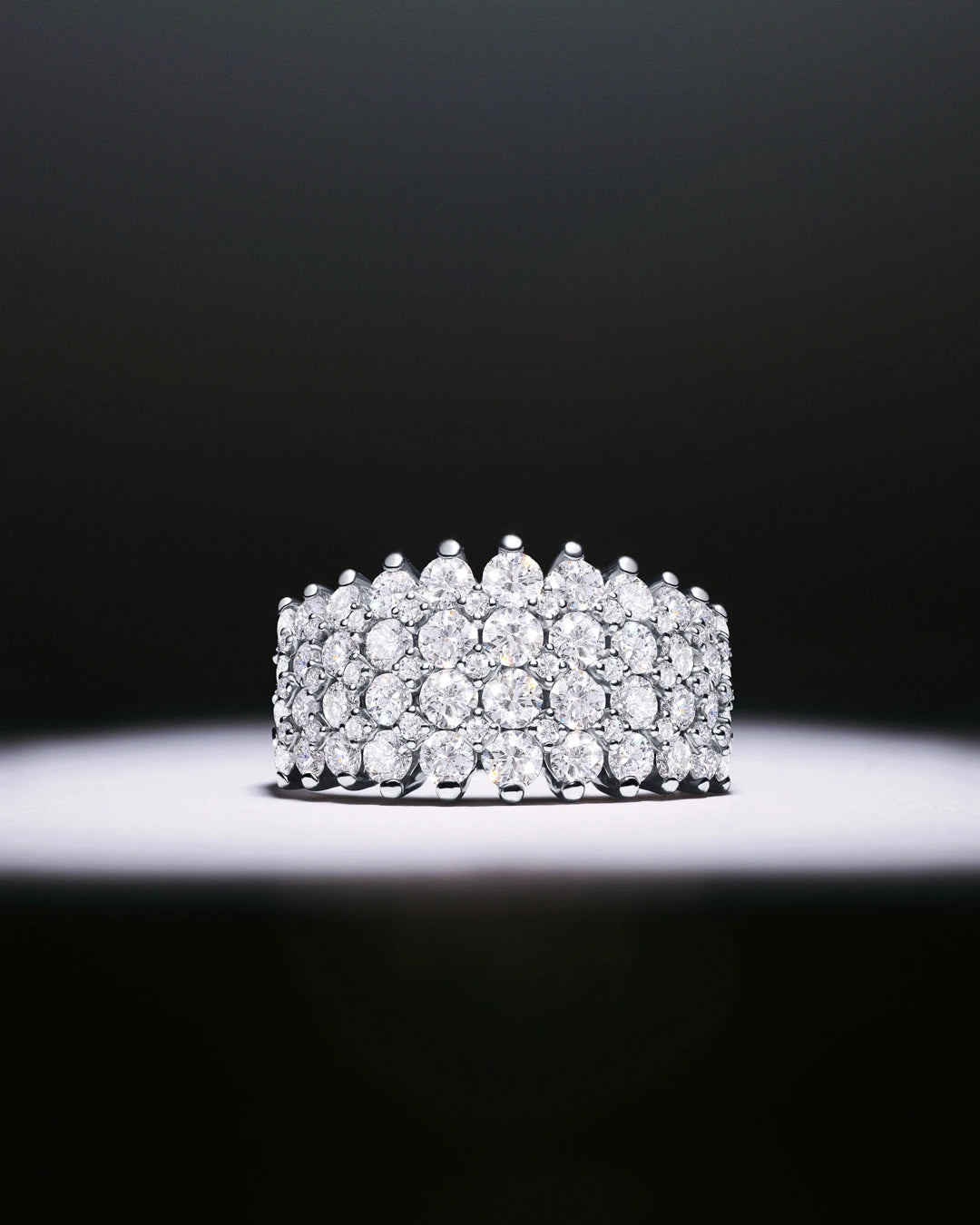 Anel Colosseo com diamantes engastados em ouro branco 18 quilates. Um anel projetado para deslumbrar, criado a partir de uma seleção cuidadosa de diamantes naturais de lapidação brilhante de extraordinária pureza para preservar uma luminosidade única. Inspirado nas formas arquitetônicas do Coliseu Romano, seu design é caracterizado por um conjunto de diamantes de lapidação brilhante com peso total em quilates de 2 cts, que se combinam para criar um elaborado pavé. Uma joia ideal para fazer parte dos momentos mais inesquecíveis.