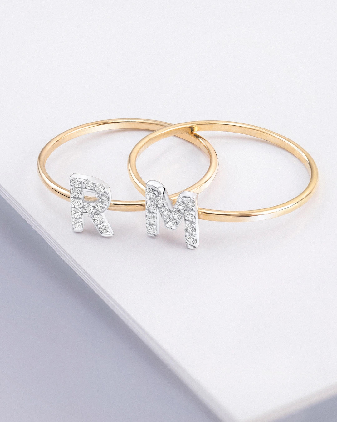 Anel de diamante inicial MY em ouro amarelo 18 K