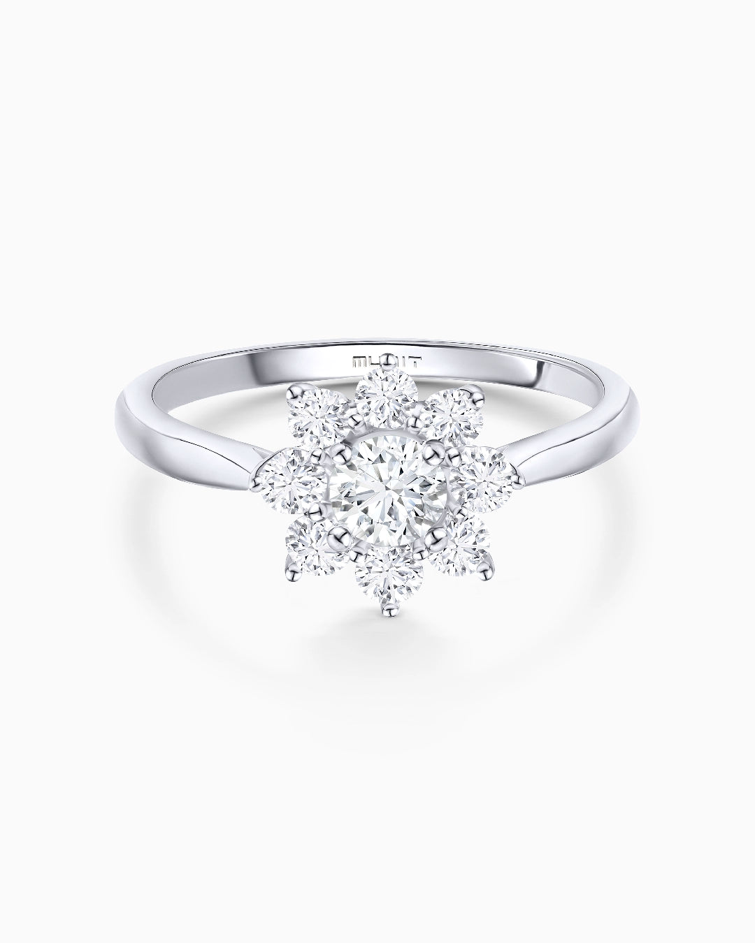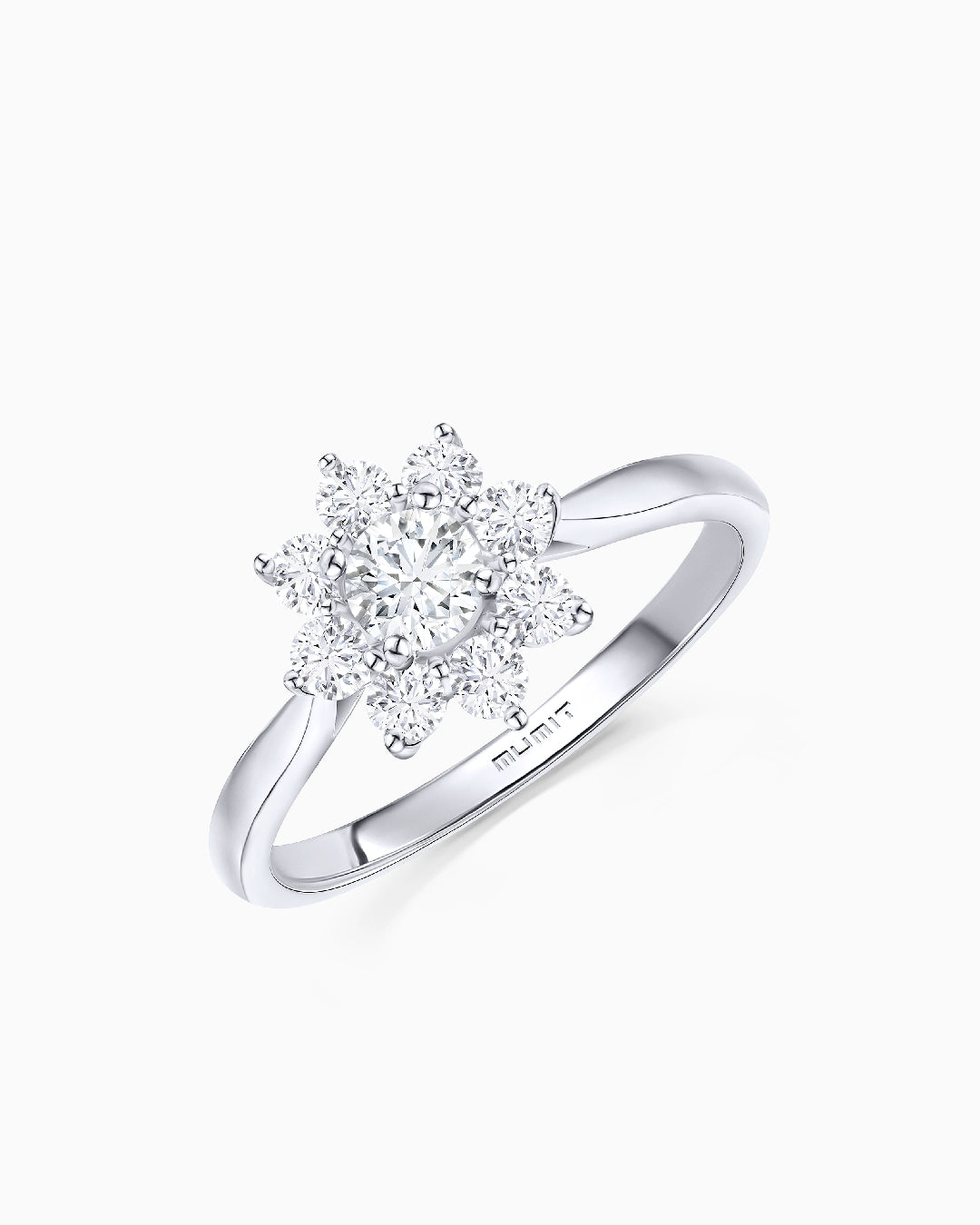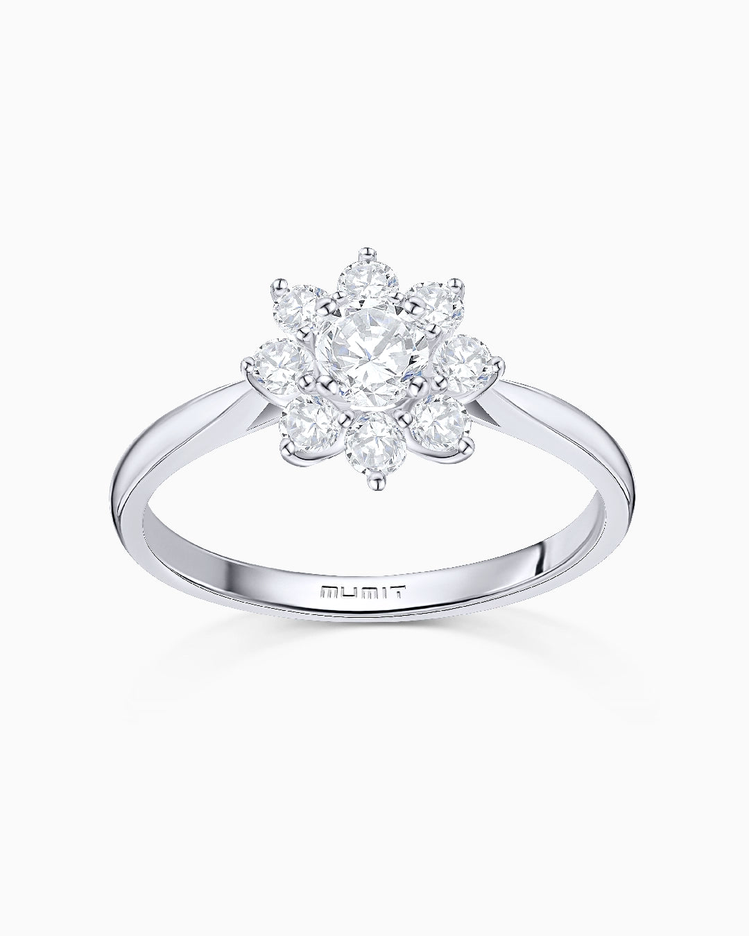Anel de diamante solitário Rosette 0,75 Cts. em ouro branco 18 Kt