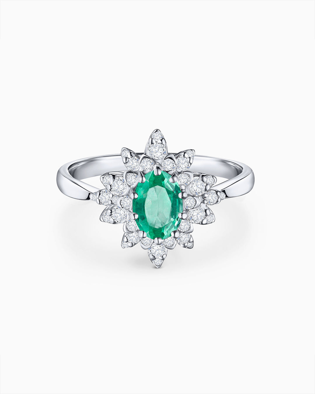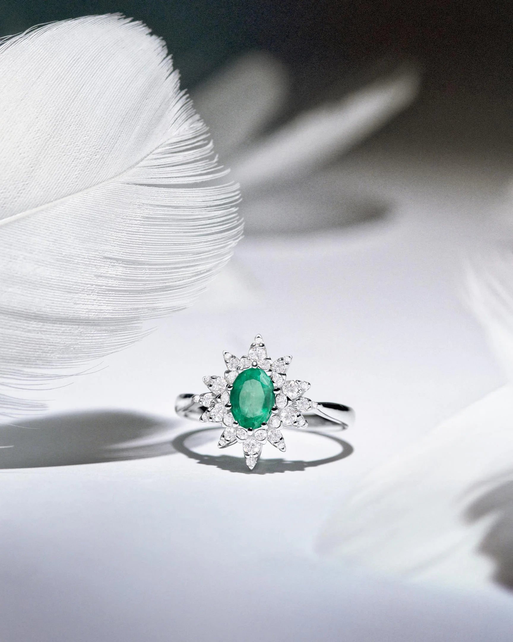 Anel de esmeralda e diamante Green Jay em ouro branco 18 K