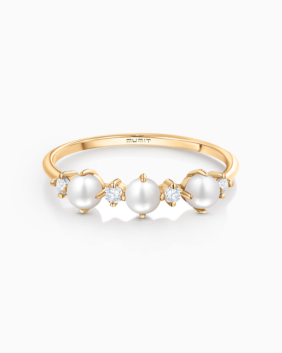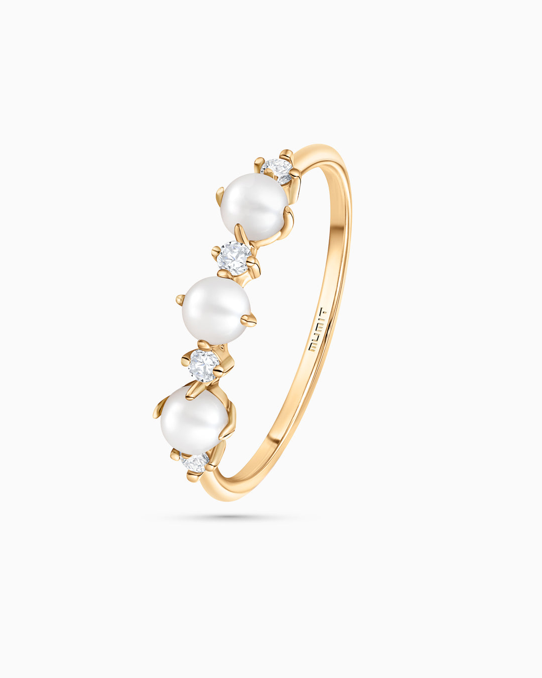 Anel de meia aliança com pérolas e diamantes Midnight Holly em ouro amarelo 18K