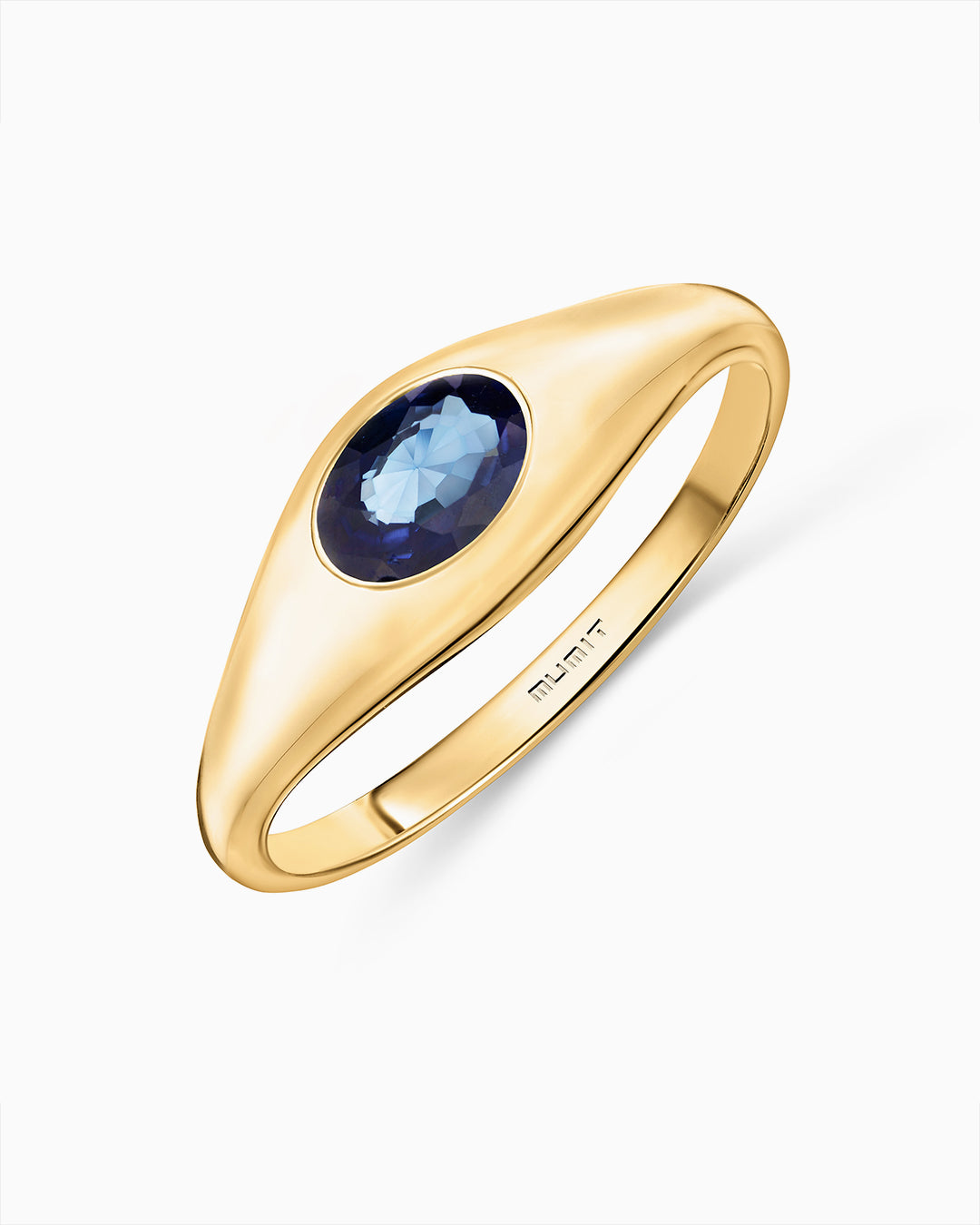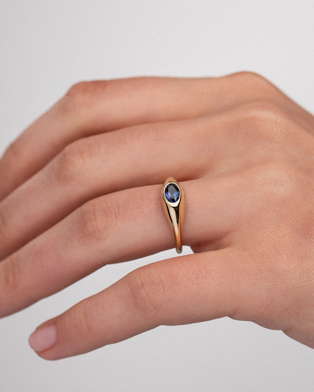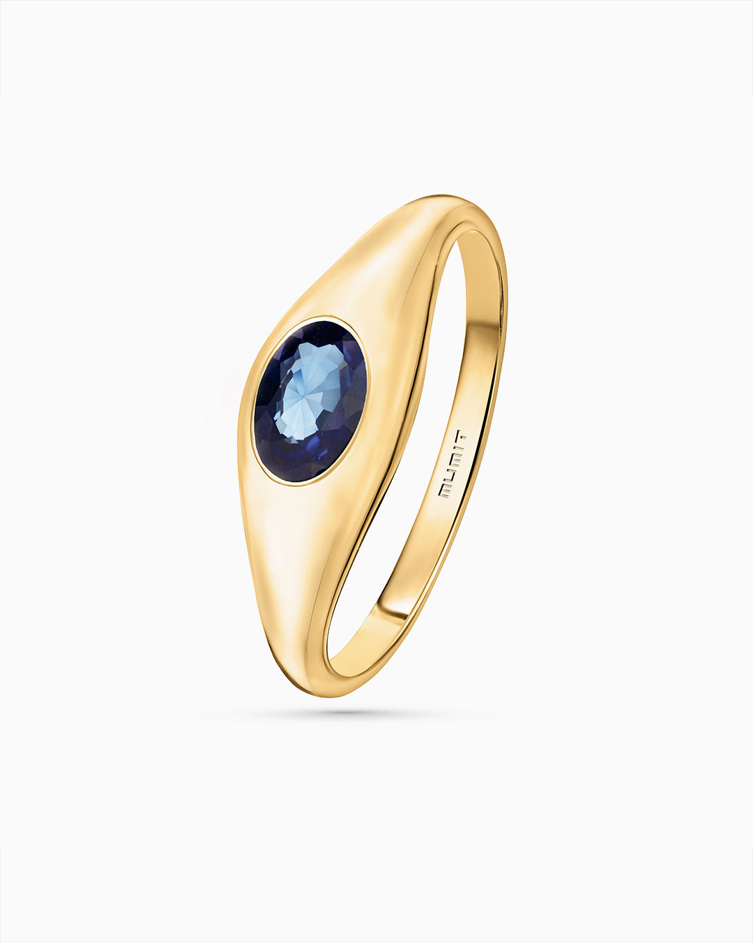 Anel de safira oval Seal Amar em ouro amarelo 18 K