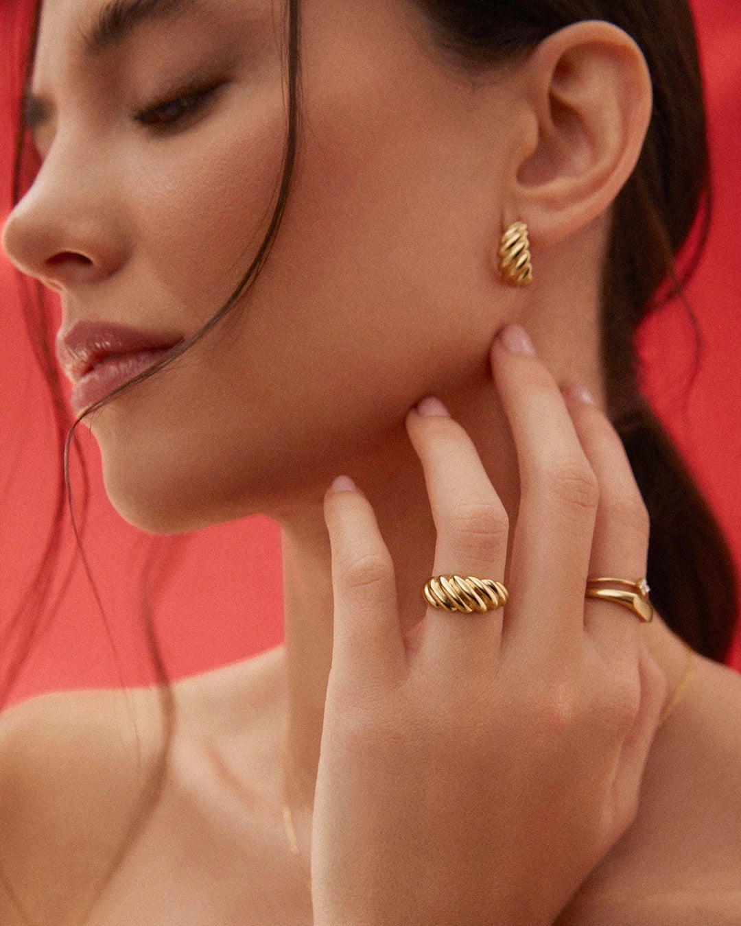 Descubra o poder expressivo do ouro no Duomo, uma coleção de joias inspiradas na arquitetura que reflete o espírito inovador da Mumit em cada brilho. Esta ode à cúpula se destaca por peças marcantes com linhas geométricas e acabamentos refinados, ideais para elevar qualquer visual. Explore os diferentes designs disponíveis para combiná-los entre si e criar contrastes de texturas e volumes que não deixarão ninguém indiferente.