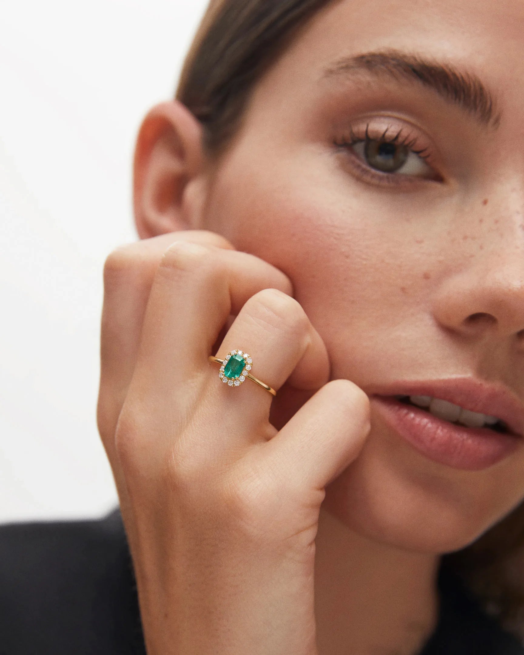 - Anel de esmeralda e diamante Elizabeth