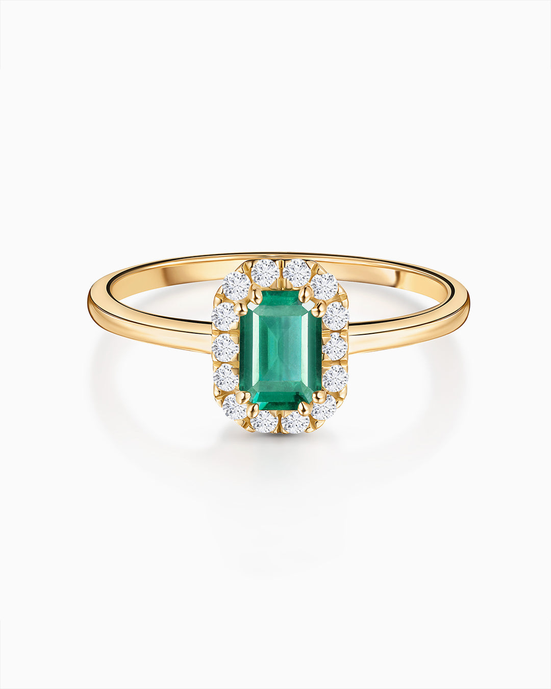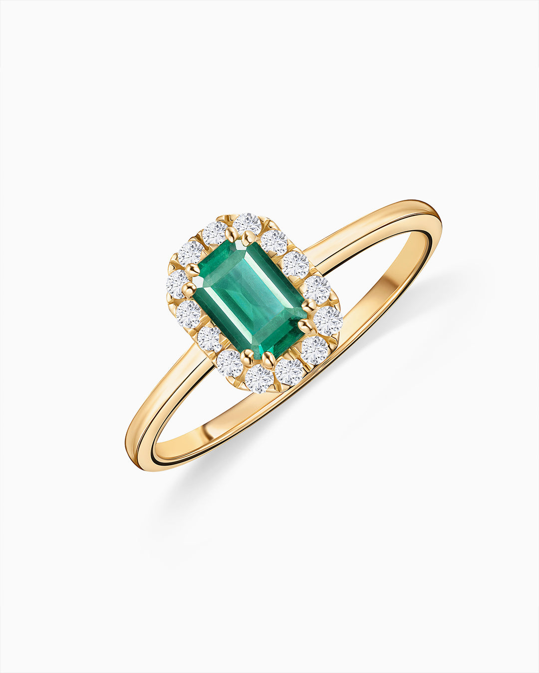 Anel Elizabeth Esmeralda e Diamante em Ouro Amarelo 18 K
