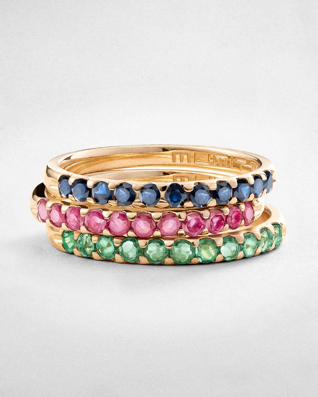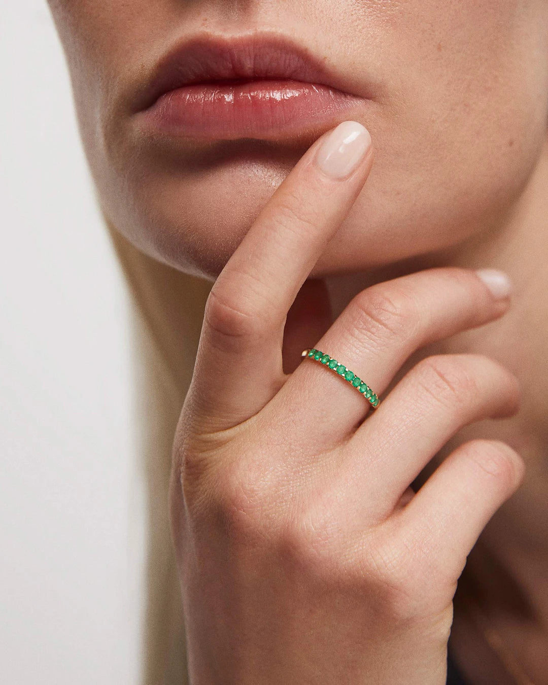 Anel Eternity Colors Bliss com esmeraldas em ouro amarelo 18 K