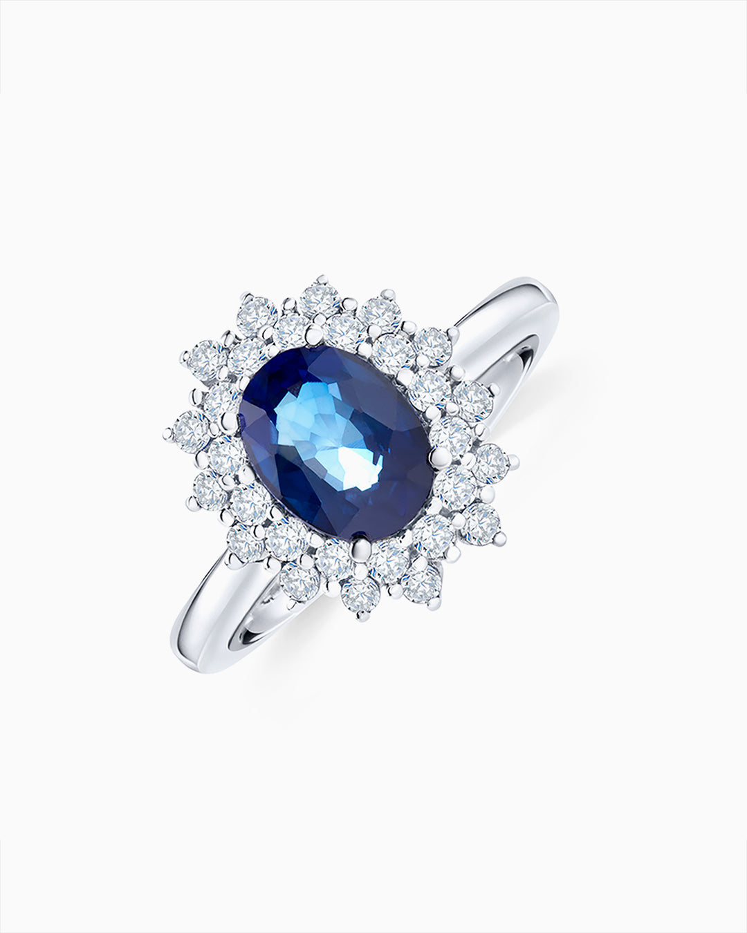- Pedra preciosa: safira azul oval central (peso total em quilates 1,9 Cts.)
