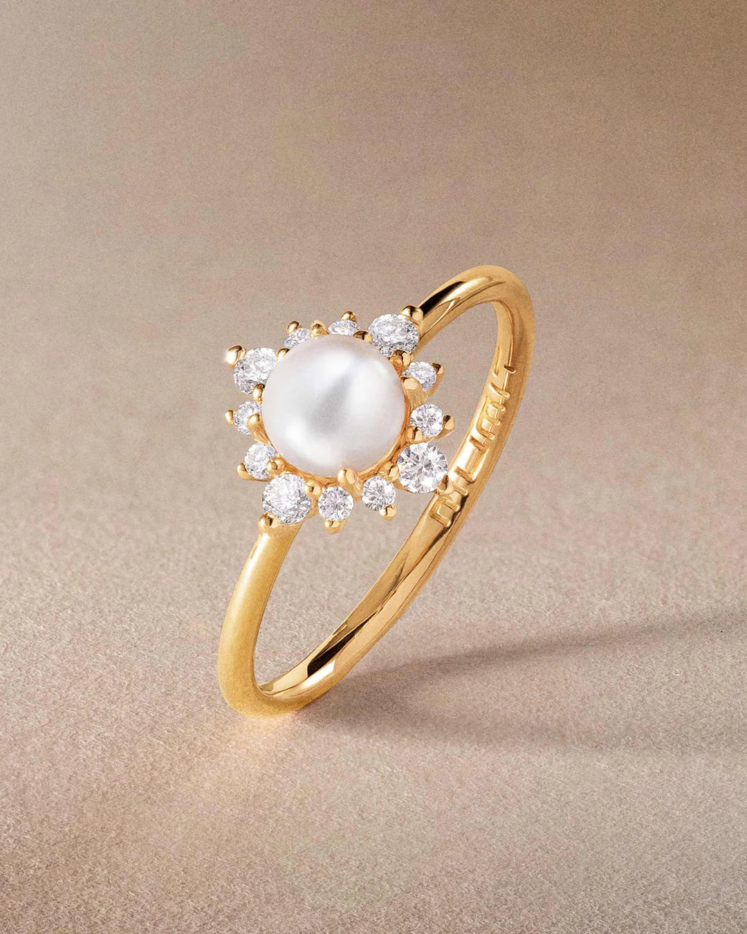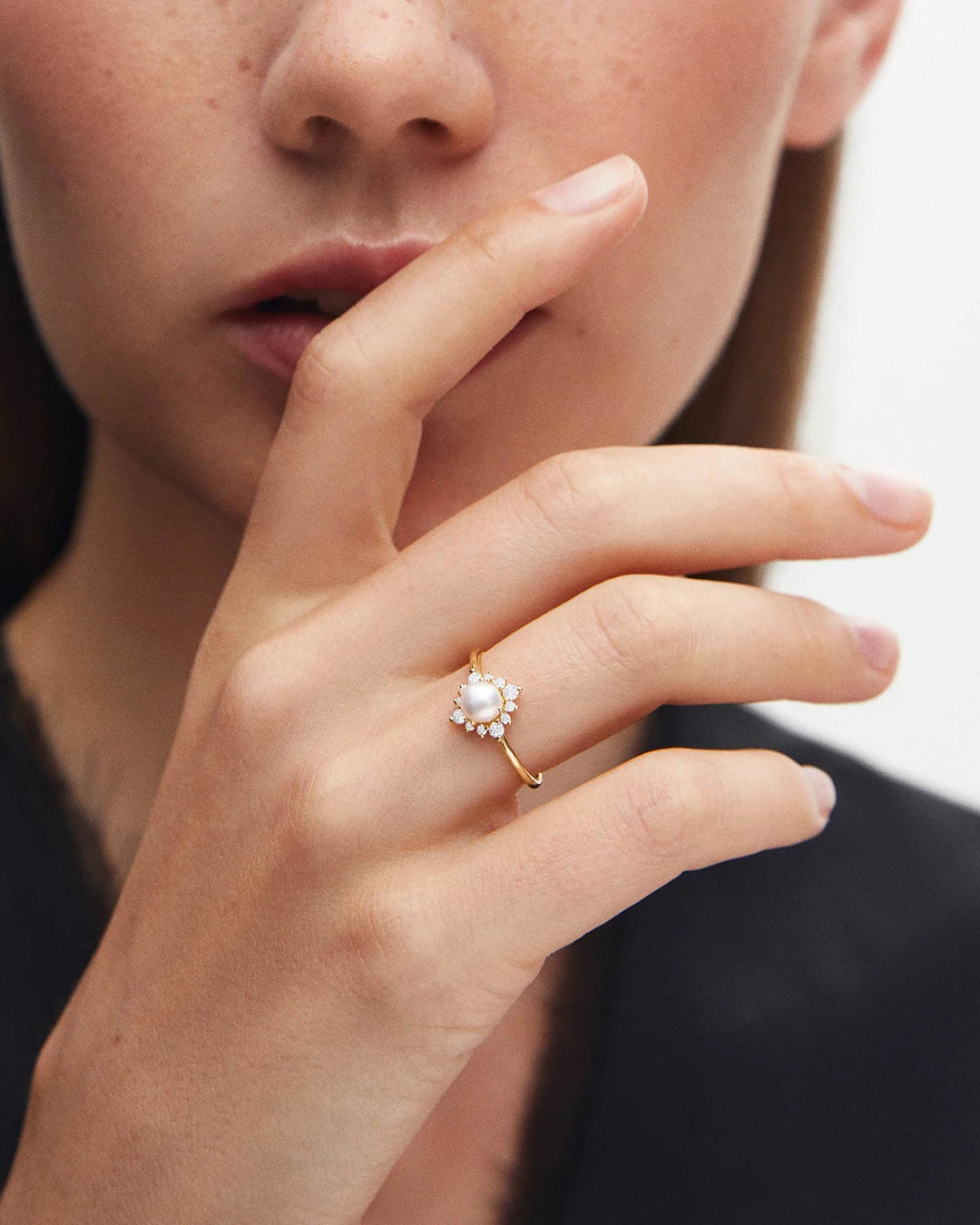Anel Midnight Holly feito em ouro amarelo 18 quilates com uma pérola e diamantes. A coleção Holly...