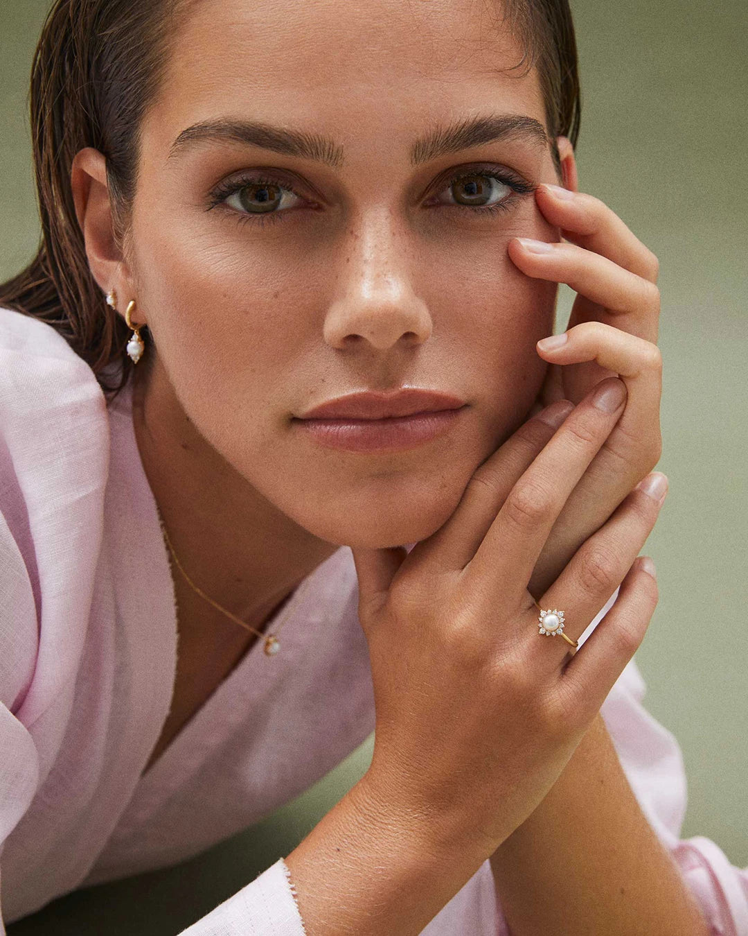 Anel Midnight Holly feito em ouro amarelo 18 quilates com uma pérola e diamantes. A coleção Holly recebeu o nome da personagem icônica interpretada por Audrey Hepburn em Bonequinha de Luxo. Charmosa e sofisticada, ela permaneceu gravada na memória coletiva por suas combinações deslumbrantes de pérolas com diamantes, refletidas no design das criações de Holly. Como um emblema dojet setNova-iorquina da época, as famosas festas do filme são um símbolo do estilo de vida cosmopolita e glamouroso da anfitriã. Da mesma forma, o anel Midnight Holly se distingue por suas linhas refinadas e uma seleção requintada de diamantes que realçam a beleza da pérola, dando-lhe um espírito tão grandioso quanto o desses eventos fabulosos. Descubra a essência da distinção através do brilho iridescente de uma joia cult, perfeita para iluminar as noites mais elegantes.