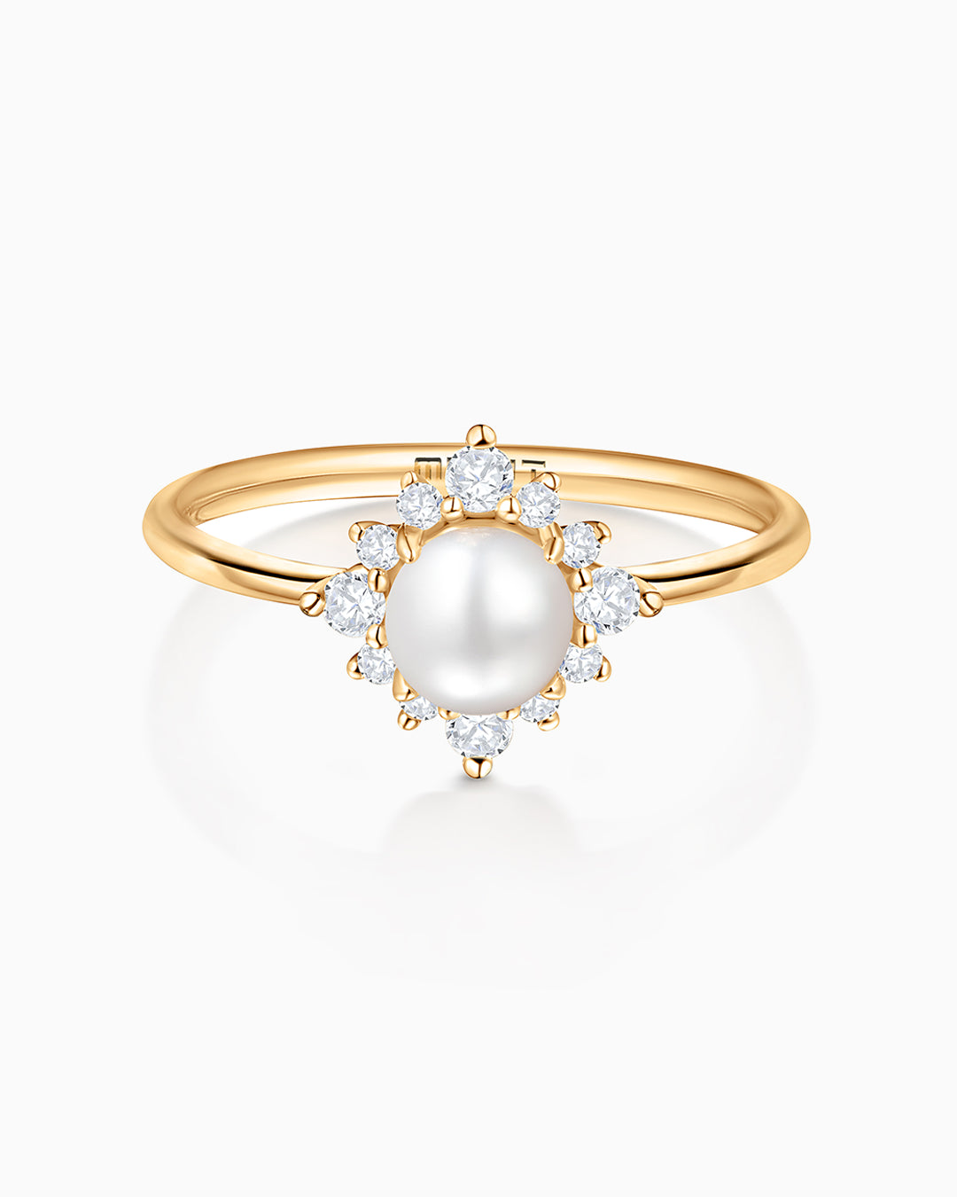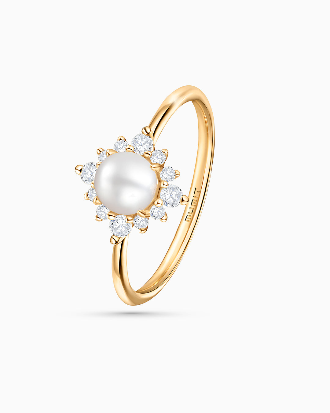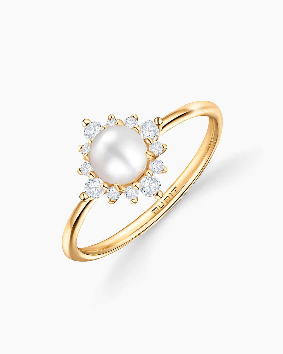 Anel Midnight Holly Pearl e Diamante em Ouro Amarelo 18K