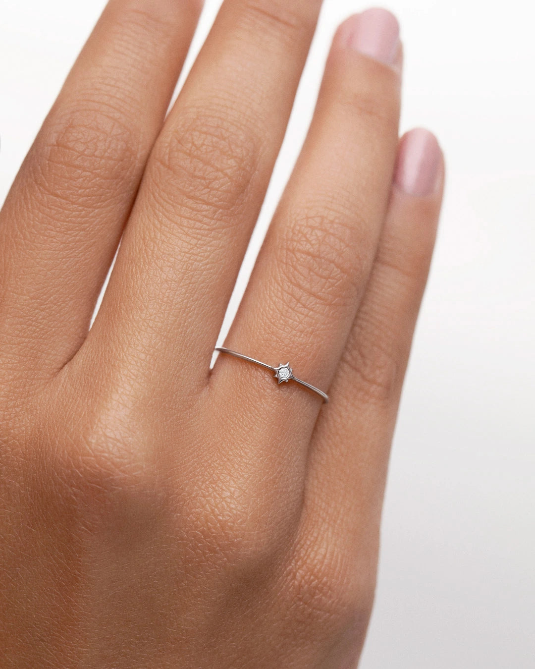Anel Petit Compass Rose com diamante central feito em ouro branco 18 quilates. Inspirada na tradicional bússola do marinheiro, a versão mini da nossa icônica coleção Compass Rose simboliza o início de uma jornada emocionante em direção a um horizonte nunca explorado. Seu design se distingue por quatro ponteiros que indicam os pontos cardeais, complementados por um diamante central de 0,015 quilates que guiará o caminho do usuário com sua luz perpétua. O presente perfeito para alguém com espírito aventureiro, este anel se tornará um fiel companheiro de viagem. O anel Rosa de los Vientos Petit está disponível em três versões: ouro amarelo 18 quilates, ouro rosa e ouro branco.