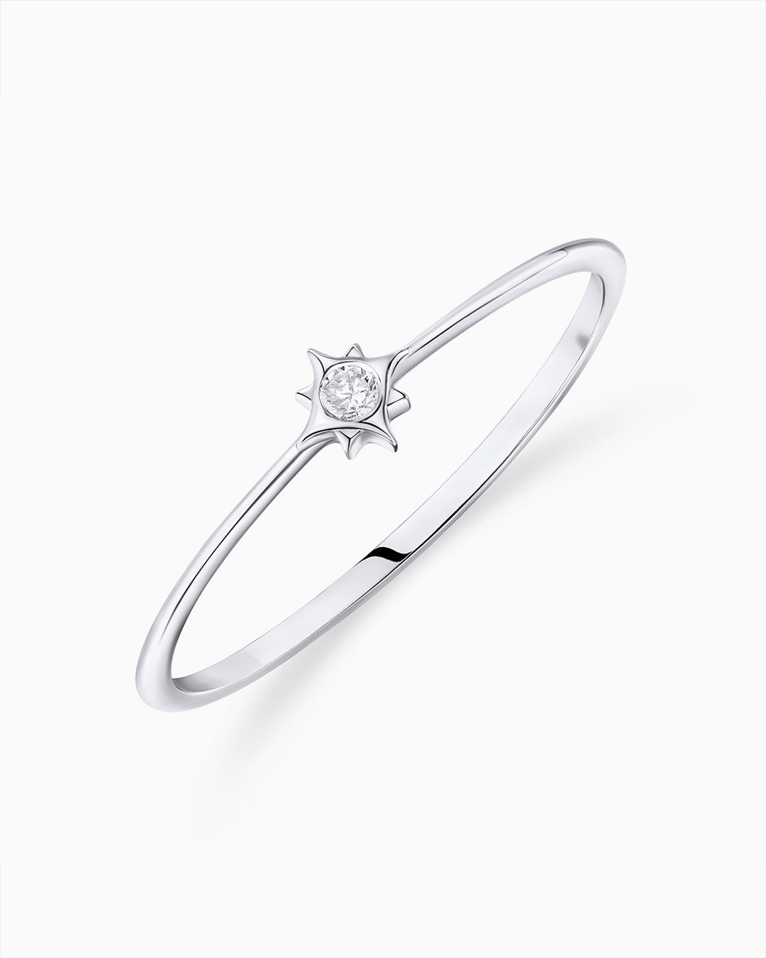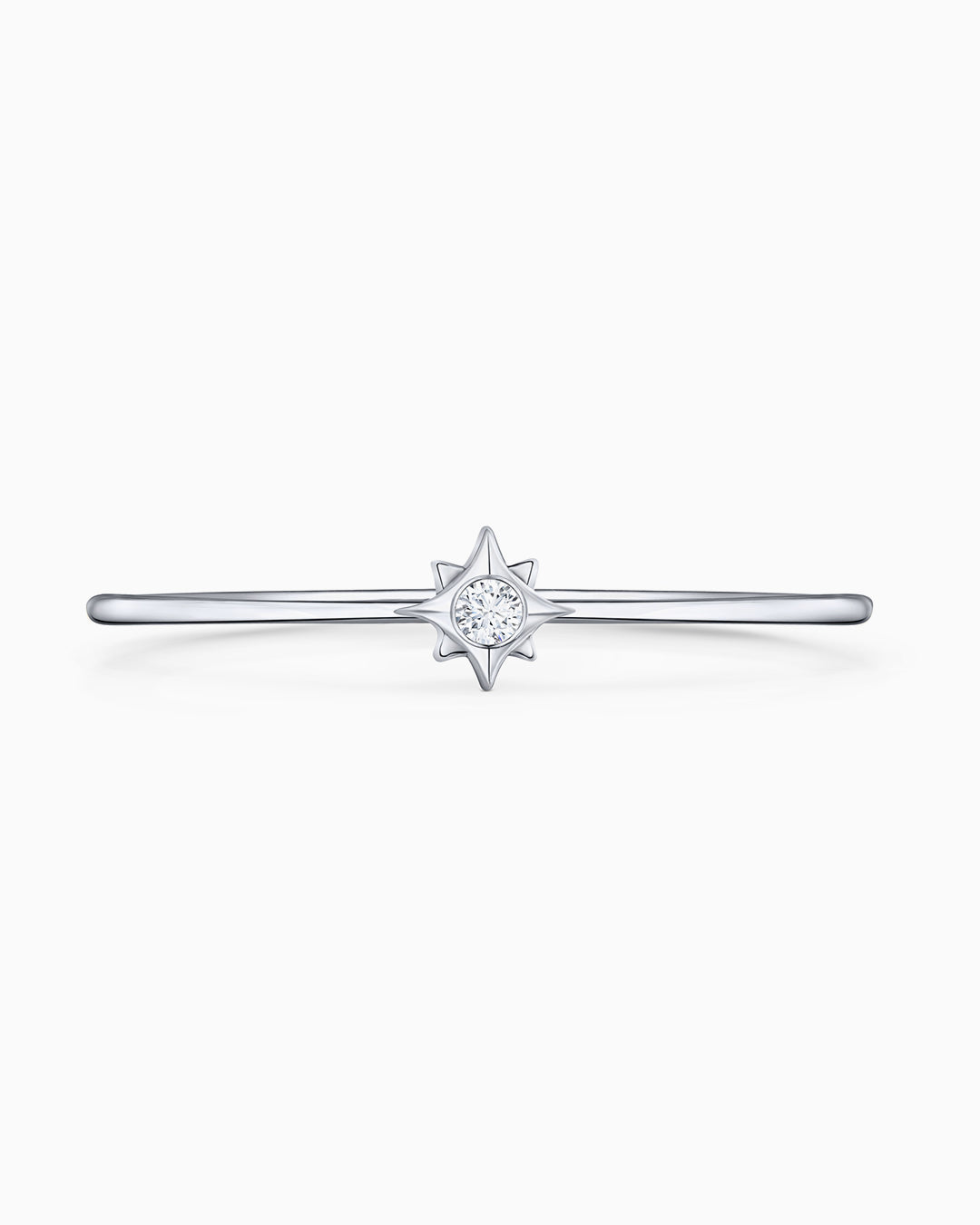 Anel Petit Compass Rose com diamante central feito em ouro branco 18 quilates. Inspirada na tradi...