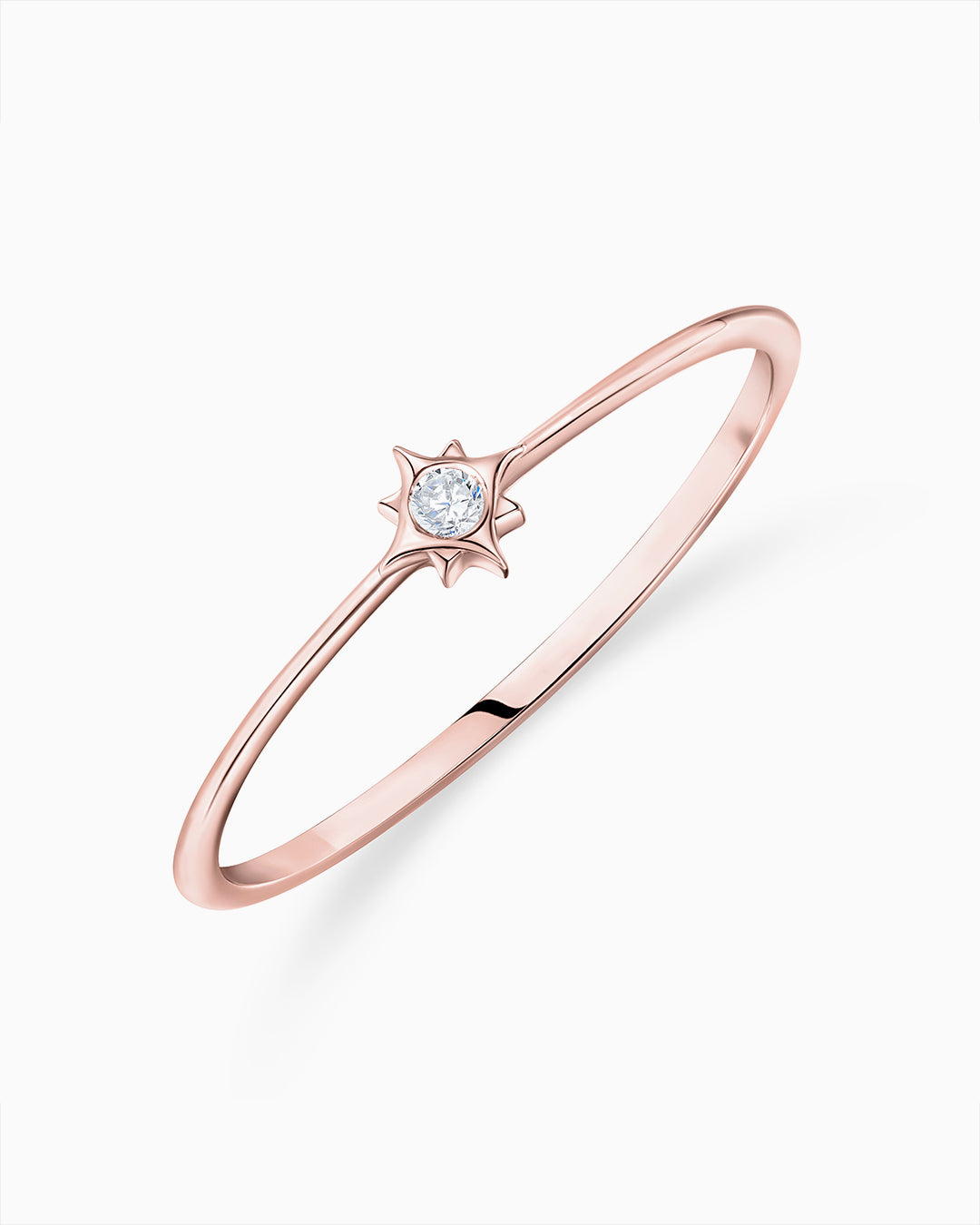 Anel Petit Compass Rose com diamante central feito em ouro rosa 18 quilates. Inspirada na tradici...