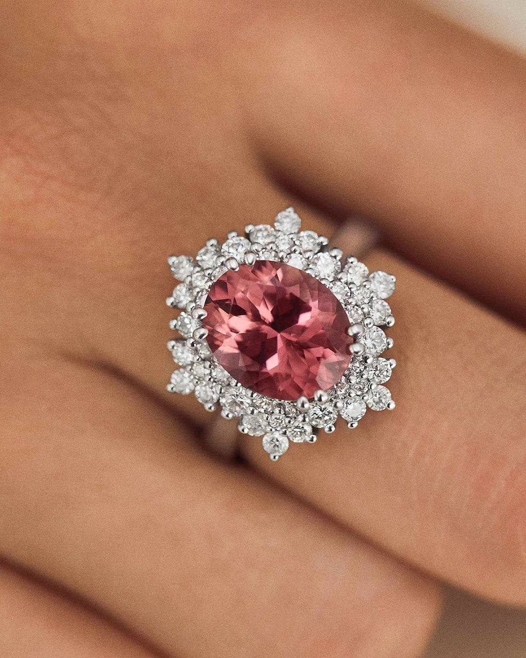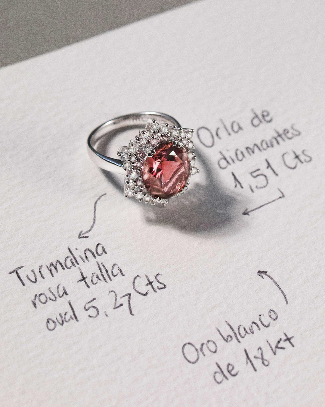 Anel de turmalina rosa Petra e diamante feito em ouro branco 18 quilates. A coleção Petra presta ...