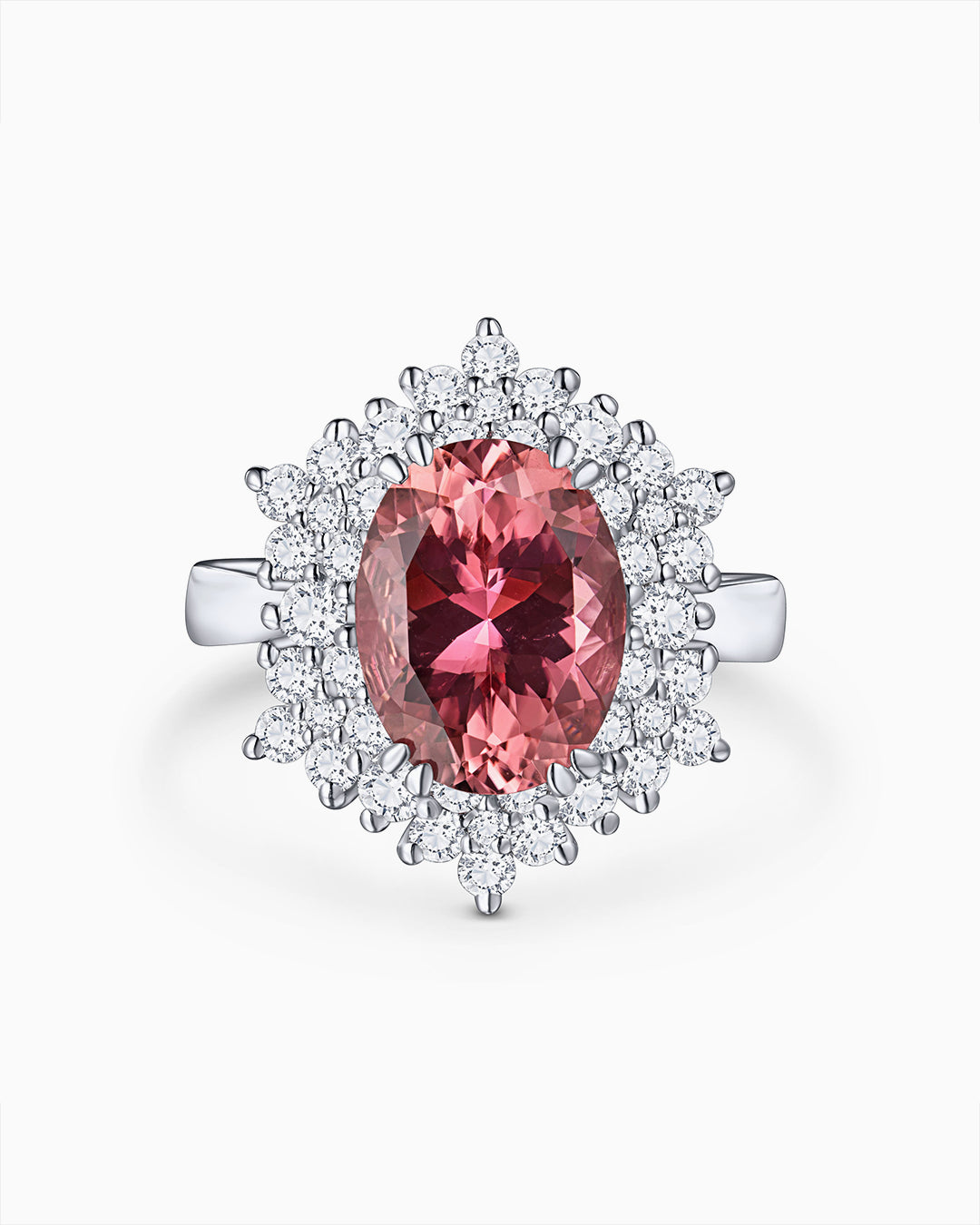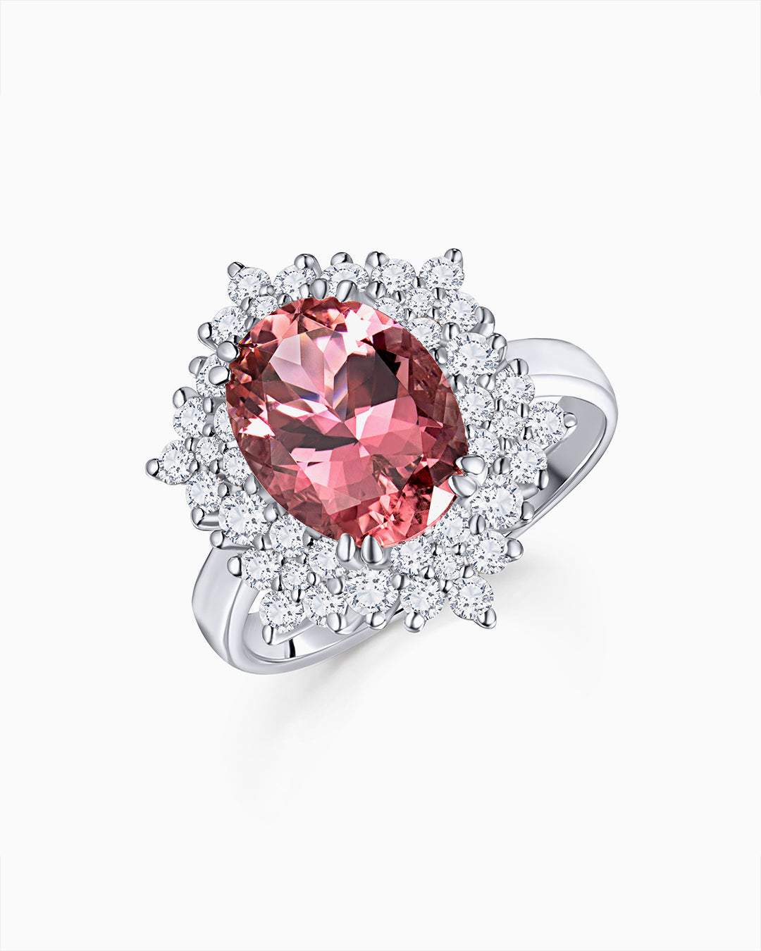 Anel Petra de turmalina rosa e diamante de 1,51 Cts. em ouro branco 18 Kt