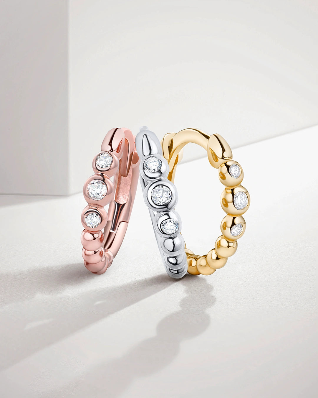 Brinco piercing Bubble Diamonds feito em ouro branco 18K. O design do piercing original Bubble Diamonds se distingue por uma sequência de bolhas em formato de argola adornadas com o brilho único proporcionado pelos diamantes Mumit. Suas linhas arredondadas lhe conferem um espírito feminino e delicado que combina perfeitamente com a essência inovadora desta releitura de um elemento básico em qualquer caixa de joias. Crie qualquer visual em questão de segundos graças ao inovador e confortável piercing Bubble Diamonds, perfeito para dar um novo visual às suas combinações de brincos favoritas. O brinco de piercing Bubble Diamonds está disponível em três versões: ouro rosa 18 quilates, ouro branco e ouro amarelo.