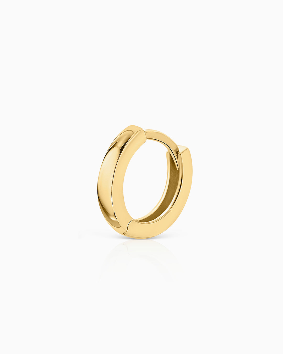 Brinco de argola MINI medindo 7 milímetros de diâmetro e feito de ouro 18 quilates. Este piercing é um básico que não pode faltar no seu porta-joias, leve e ideal para nunca mais tirar. É um brinco criado sob o conceito de conforto para que você não perceba que está usando, ele também tem um diâmetro de 7 mm o que significa que pode ser usado no lóbulo e se encaixa perfeitamente na hélice. Seu fecho estilo catalão torna muito fácil de colocar e tirar, além de oferecer segurança. Junte-se à tendência da moda e crie seu look de orelha com Mumit! À venda em unidades individuais.