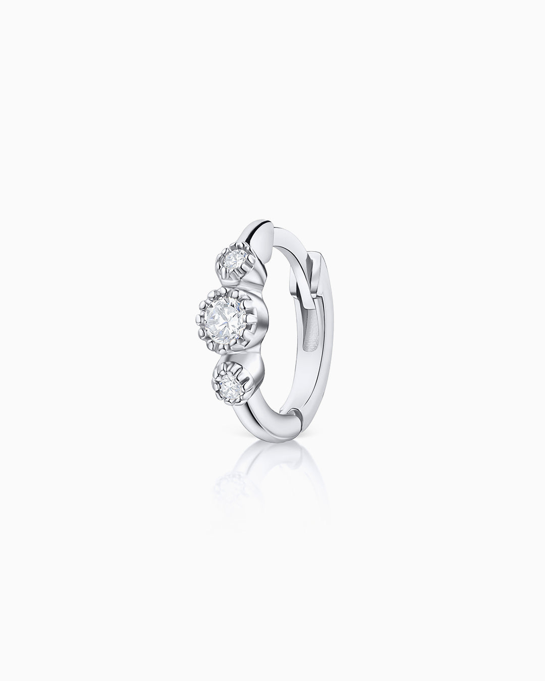 Brinco de piercing de diamante Milgrain Couronne em ouro branco 18K