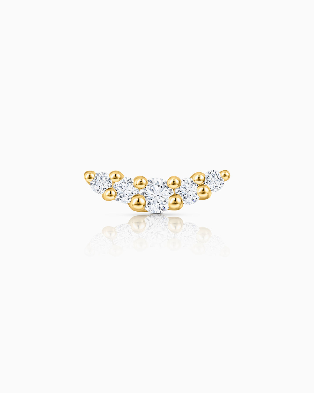 Brinco piercing Petite Diamonds Wave feito em ouro amarelo 18 quilates. Projetado em três cores, ouro branco, rosa e amarelo 18 K, este piercing de orelha original com linhas simples e ângulos geométricos se tornará um dos seus itens básicos inseparáveis, o item essencial perfeito para guardar na sua caixa de joias em qualquer ocasião. Seu design original é caracterizado por uma barra curva de diamantes montados em ordem decrescente com um peso total em quilates de 0,04 cts. Perfeito para combinar com os outros piercings da coleção, este brinco possui fecho de pressão que proporciona segurança e conforto. Um piercing diferente com um toque ingênuo que você vai se apaixonar. Seu formato curvo torna este piercing adequado tanto para a hélice quanto para o lóbulo, as possibilidades são infinitas. Se desejar, você pode encomendá-lo com um fecho de parafuso especial para hélice ou cartilagem, você pode encomendá-lo no menu acima (este extra tem um custo adicional de € 6). Além disso, você pode encomendá-lo com um fecho especial para o tragus (este extra tem um custo adicional de € 25). Junte-se à tendência da moda e crie seu look de orelha com Mumit!