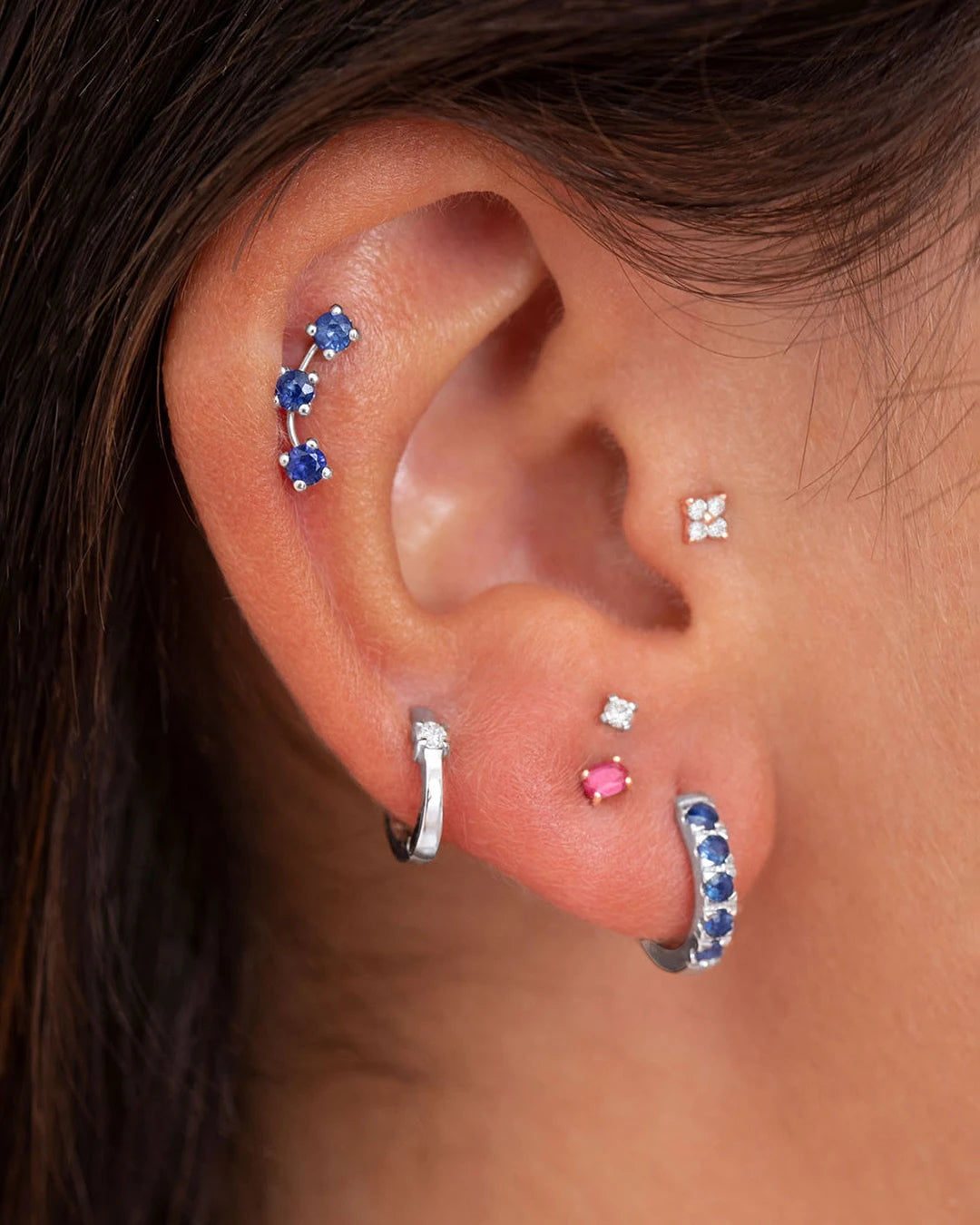 - Brinco de piercing de safira Eternity Colors Bold
