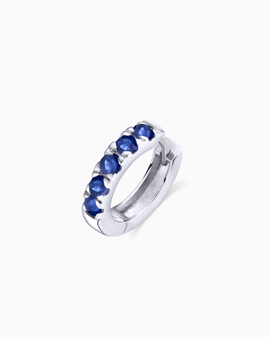 Brinco piercing Eternity Colors Bold com safiras montadas em ouro branco 18K. Projetado em três cores sublimes, esmeralda, safira e rubi, este piercing é a versão sem diamantes de uma das nossas coleções mais icônicas. Este é um brinco original que é todo sobre cor e positividade. Ele tem um aro um pouco mais largo do que o modelo Eternity Colors Hoop, um detalhe único que lhe dá um ponto diferenciador que você vai adorar. Possui tamanho ideal para se adaptar perfeitamente a qualquer piercing, independente de sua localização. Combine-os com os outros brincos da coleção e crie combinações de cores surpreendentes.O brinco piercing Eternity Colors Bold está disponível em três versões: ouro amarelo com esmeraldas, ouro rosa com rubis e ouro branco 18 quilates com safiras. Junte-se à tendência da moda e revolucione o visual das suas orelhas com Mumit!