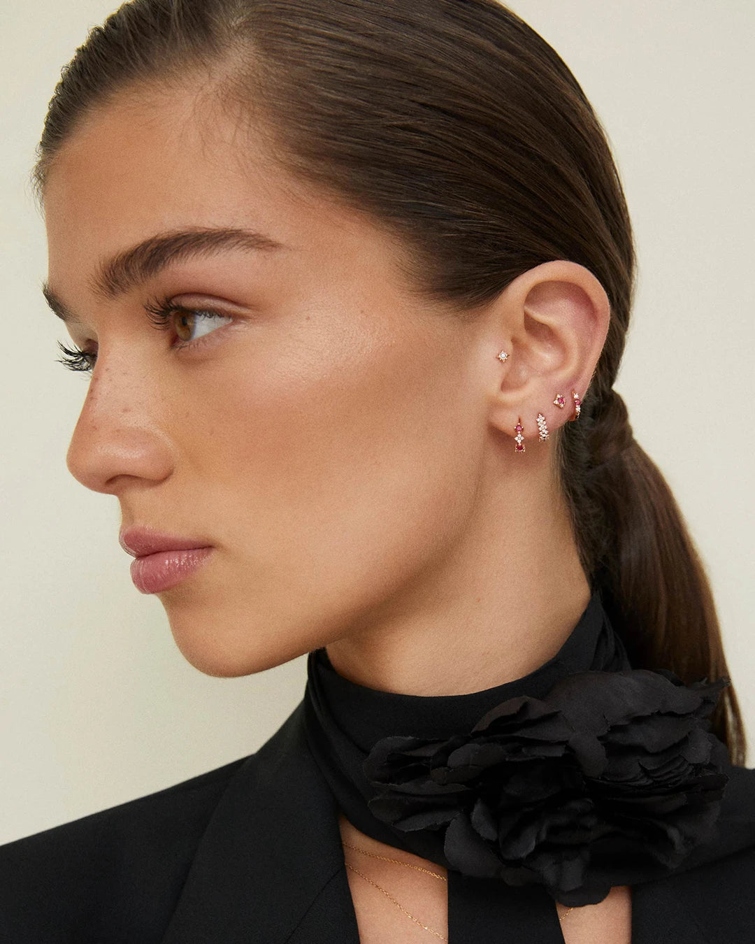 Brinco de piercing Memphis Ruby e diamante em ouro rosa 18K